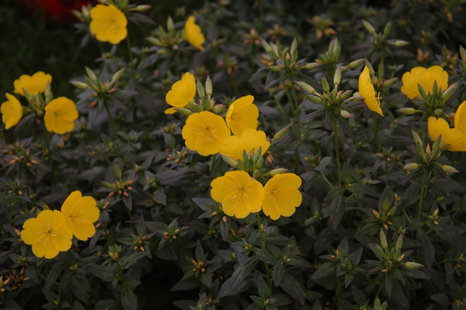 Nachtkerze Oenothera tetragona Hohes Licht mit leuchtend gelben Blueten Juni bis August