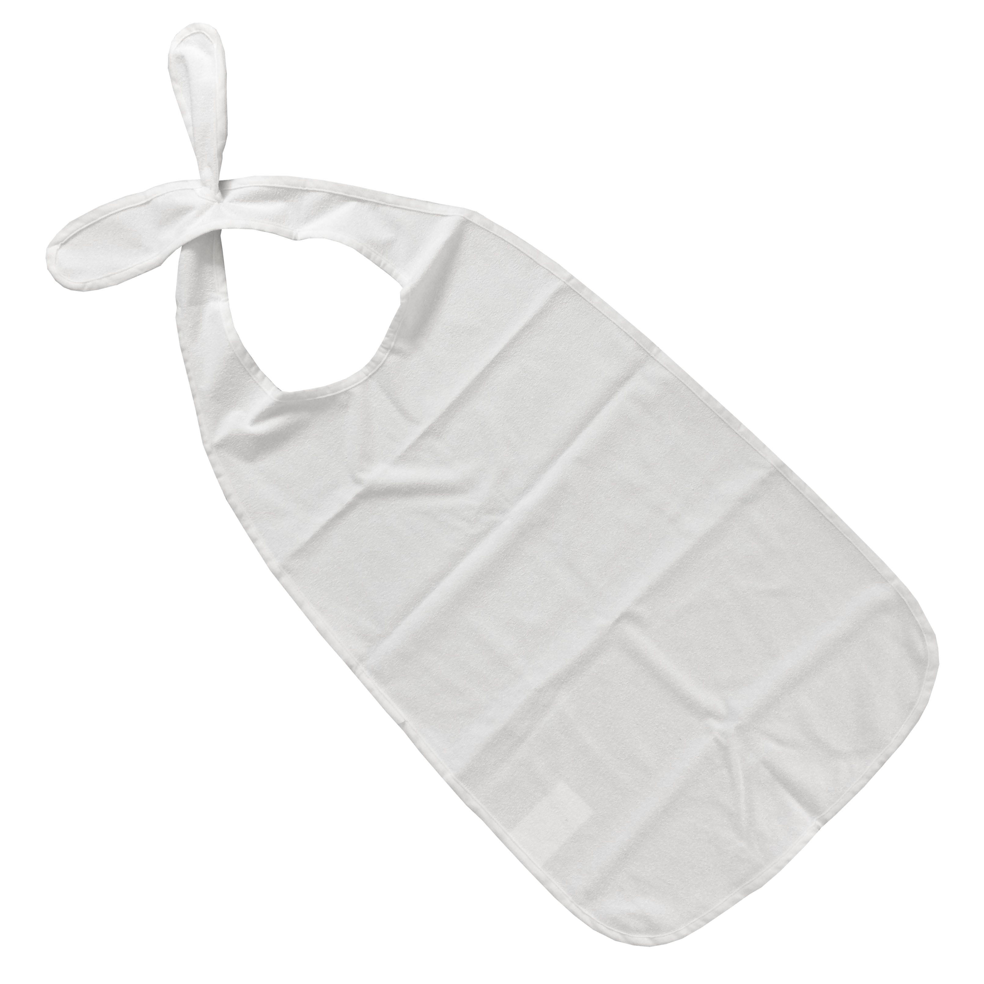 Kleiderschutz mit PU-Schutz und Steckverschluss. Mit dieser Ess-Schürze bleibt die Kleidung in Zukunft sauber und trocken. Durch die Polyurethan-Schicht des Kleiderschutzes wird verhindert, dass Flüssigkeiten auf die Kleidung gelangen.