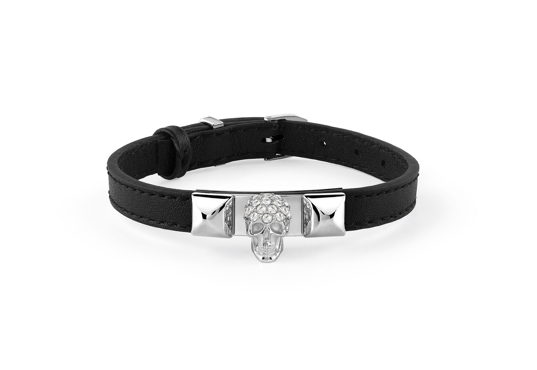 Hersteller:Philipp Plein ModellNr :PJOEA01BU - Collection PLEIN ENIGMA Material:Unisex Armband aus Leder / Edelstahl silber, Plakette mit Skull Farbe: schwarz / silber Maße:Длина: ca. 22 cm, Breite: ca. 1,0 cm, Stärke: ca. 1,2 cm, Verschluss: Dornschließe, Gewicht: ca. 12,5 Gramm LieferumfangAuslieferung in Philipp Plein Box Info: Die Plein Enigma-Kollektion ist ein Must-have für jeden Kleiderschrank. Mit einem Fokus auf schlichtes Design und maskulinen Geschmack zeigt unsere Plein Enigma-Kollektion für Männer Philipp Pleins faszinierende Anziehungskraft. Philipp Plein verwandelt ein einfaches Konzept in Must-have-Schmuck für den modernen Mann.