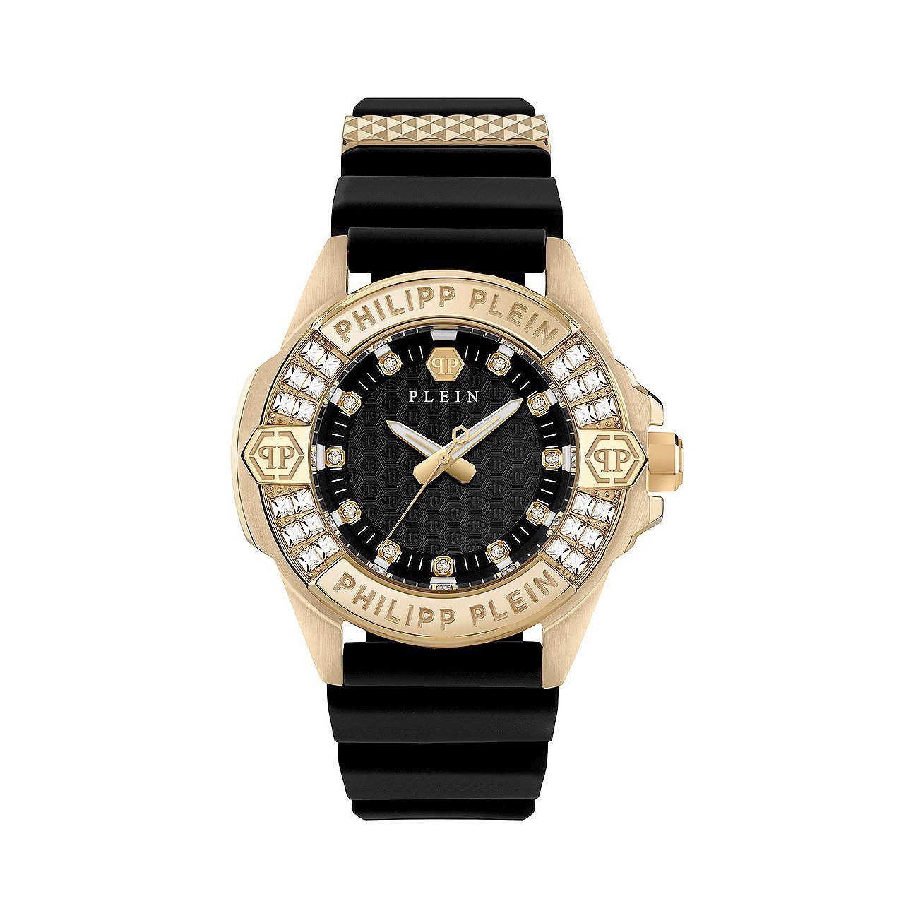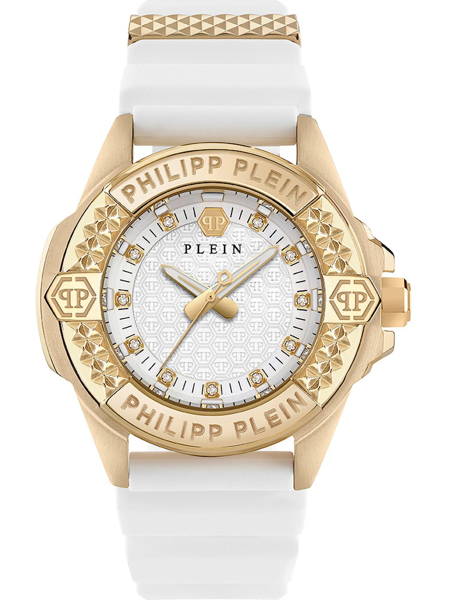 Philipp Plein Uhren sind alles andere als zurückhaltend – sie strahlen Luxus und Provokation aus. Mit kraftvollen Designs und auffälligen Details zeigst du Selbstbewusstsein und Stil. Diese Uhren sind für alle, die das Besondere lieben. Fashion-Statement für dein Handgelenk Diese Edelstahl-Damenuhr mit einem Armband aus Silikon ist die perfekte Wahl für alle, die eine sportliche und robuste Uhr suchen. Die Philipp Plein Plein Majesty hat ein gelbgoldenes Armband und ein gleichfarbiges Ziffernblatt, die durch ein gelbgoldenes Gehäuse perfekt ergänzt werden. Ob du ein schmales oder breiteres Handgelenk hast, ist egal: Das runde Gehäuse mit einem Durchmesser von 38 mm sieht definitiv an jedem Arm gut aus. Im Inneren tickt ein zuverlässiges Quarzwerk. Eine individuelle Note für deinen Look Das Uhrenglas aus Mineralglas ist klar und robust – und damit perfekt für den Alltag. Dieser Zeitmesser ist wasserdicht bis zu 50 Meter (5 Bar) und hält so auch Regen, Spritzwasser oder einem wohltuenden Bad problemlos stand. Wer seinem Look eine stilvolle Note verleihen möchte, macht mit der Philipp Plein Plein Majesty Damenuhr definitiv alles richtig!