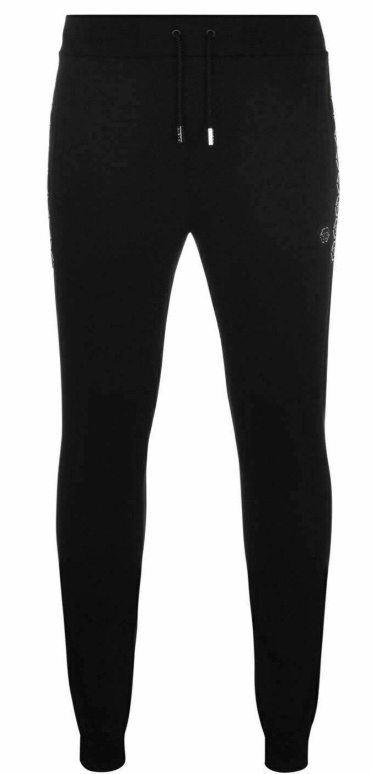 Diese Jogginghose von PHILIPP PLEIN mit elastischen Bündchen und schmal zulaufendem Bein besteht aus einer weichen Poly-Baumwoll-Mischung. Sie verfügt über zwei Taschen, einen Kordelzugbund mit Logo und ein wiederholtes PP-Branding entlang beider Beine. Die Hose wird durch ein oversized PLEIN-Label an der Seitennaht und ein PP-Emblem unterhalb der linken Tasche abgerundet. Vervollständigen Sie Ihren lässigen Look mit diesen Tape Logo Jogginghosen von Philipp Plein. Gefertigt aus einer Polyester-Baumwoll-Mischung, verfügen diese Hosen über gerippte Bündchen, einen elastischen Kordelzugbund und drei offene Taschen. Das Design wird durch das markentypische Tape entlang der Beine und das Markenabzeichen auf der Vorderseite abgerundet.