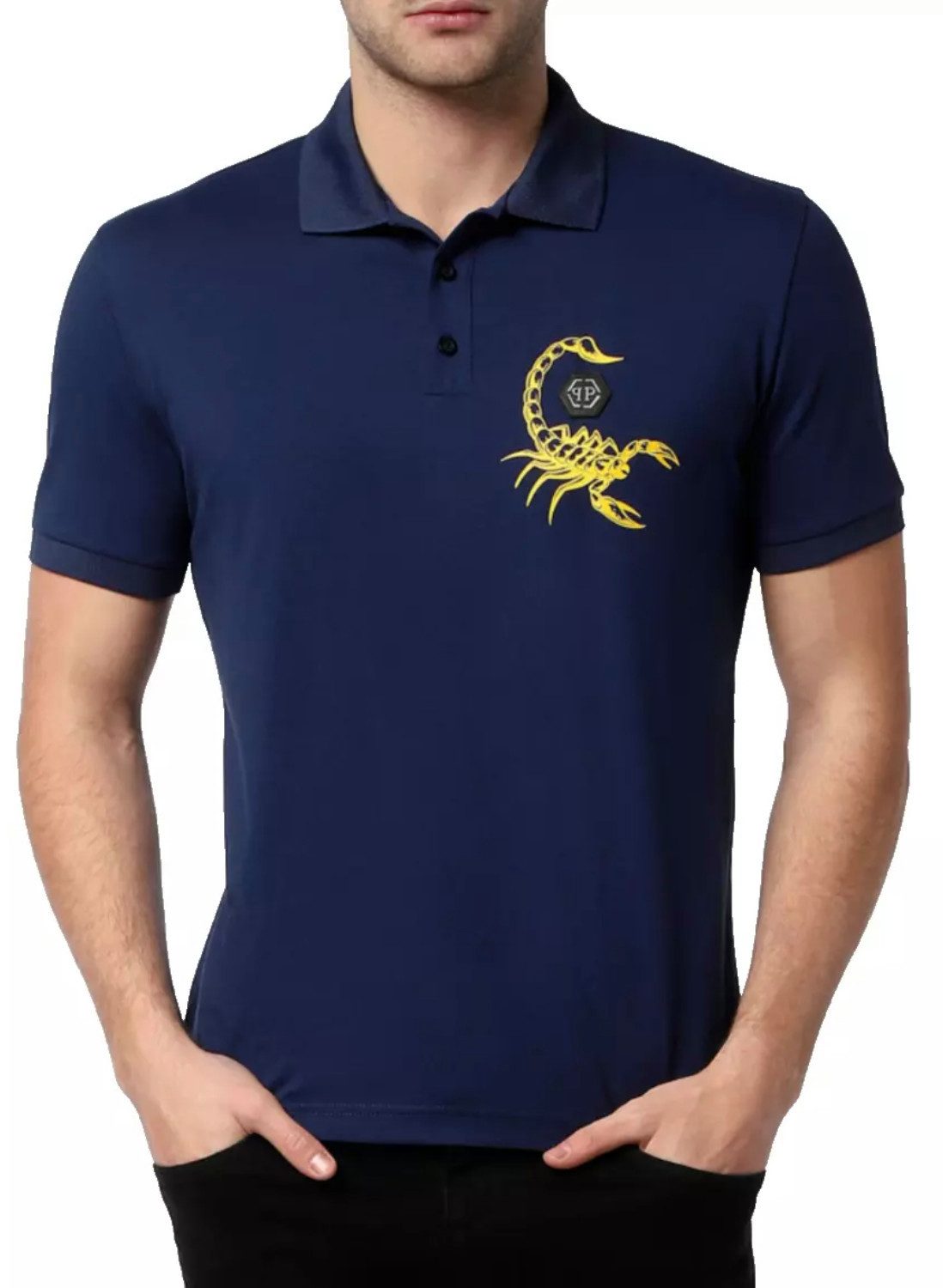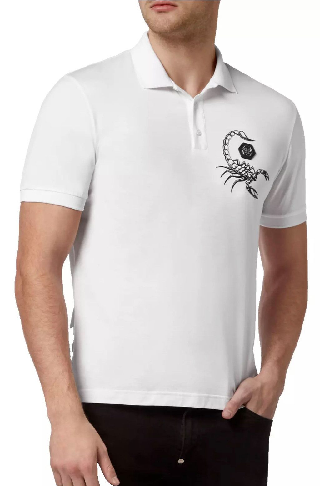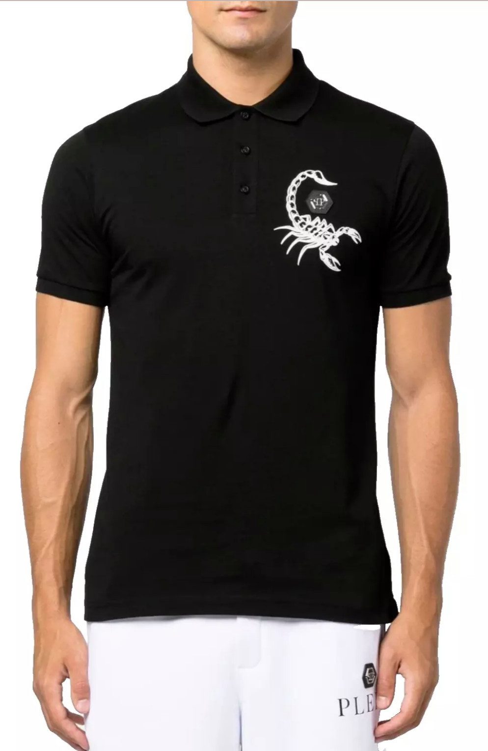 Wählen Sie den lässigen Stil, der Philipp Plein auszeichnet. Dieses Polohemd aus Baumwolljersey kombiniert Komfort und Luxus und ist ein Must-Have für jede moderne Garderobe. Auf der linken Brust befindet sich das ikonische PP Hexagon auf einem Lederabzeichen, begleitet vom Print des Skorpions, dem Thema dieser Saison. Der Skorpion und das Markenlogo sind ebenfalls auf der Passe aufgedruckt. Knopfverschluss am Kragen, gewebter Rippenkragen und Bündchen, asymmetrischer Saum mit zwei Seitenschlitzen und Zwei-Nadel-Nähten verleihen diesem Polo den perfekten Look.