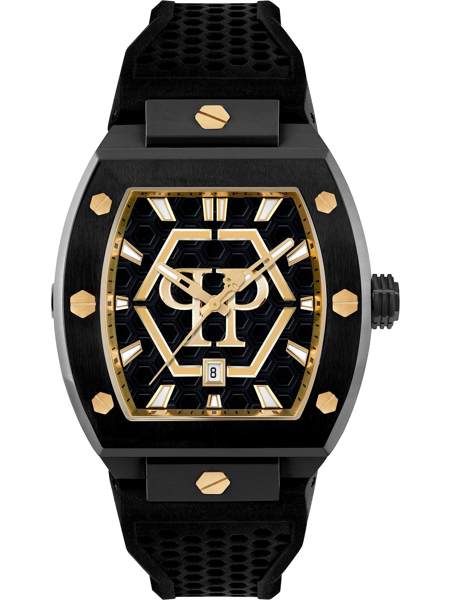 Schlank, pur und kantig. Wir präsentieren die Hexagon Phantom, ein revolutionäres Design im perfekten Philipp Plein-Stil. Mit ihrem meistverkauften tonnenförmigen Gehäuse mit Quarzherz und dem ikonischen PP-Logo, das auf dem Zifferblatt explodiert, setzt die Hexagon Phantom neue Maßstäbe in der Uhrenindustrie.Die Hexagon Phantom zu tragen bedeutet nicht nur, die Zeit abzulesen; es geht darum, ein Statement abzugeben. Es geht darum, Raffinesse, Präzision und eine Leidenschaft für Exzellenz zu verkörpern.