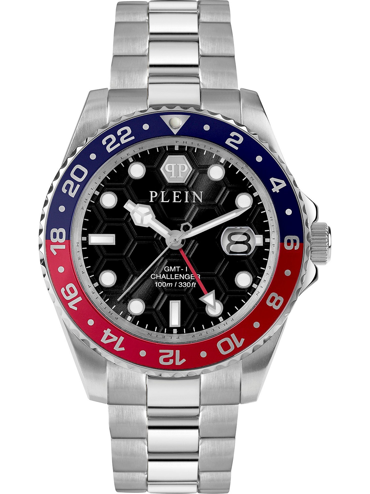 Wer Philipp Plein trägt, sucht nach dem Besonderen. Diese Uhren sind Ausdruck von purem Luxus und kühnen Designs. Perfekt für alle, die sich nicht mit dem Gewöhnlichen zufrieden geben und einen Look wollen, der Stärke und Stil ausstrahlt. Всеn, die es sportlich und robust lieben, empfehlen wir diese Edelstahl-Herrenuhr an einem langlebigen und bequemen Metall-Band. Die Gmt-I Challenger von Philipp Plein kommt in Silber daher, wozu das schwarze Ziffernblatt besonders gut aussieht. Ein echter Allrounder ist das runde Gehäuse mit 44 Millimetern Durchmesser: Es sieht einfach an jedem Handgelenk gut aus. Im Inneren tickt ein zuverlässiges Quarzwerk. Ein Mineralglas bietet eine klare Sicht auf das Ziffernblatt und guten Schutz gegen alle Einflüsse, die bei normalem Gebrauch entstehen. Dieser Zeitmesser ist der ideale Begleiter – egal wann und wo: Dank einer Wasserdichte von 10 Bar kann er selbst beim Schwimmen problemlos am Handgelenk verbleiben. Durch die Butterfly-Faltschließe lässt sich das Armband leicht anlegen und sicher verschließen. Kurz gesagt: Die Philipp Plein Gmt-I Challenger Herrenuhr ist ein Statement für guten Geschmack - und ein zuverlässiger Begleiter im Alltag.
