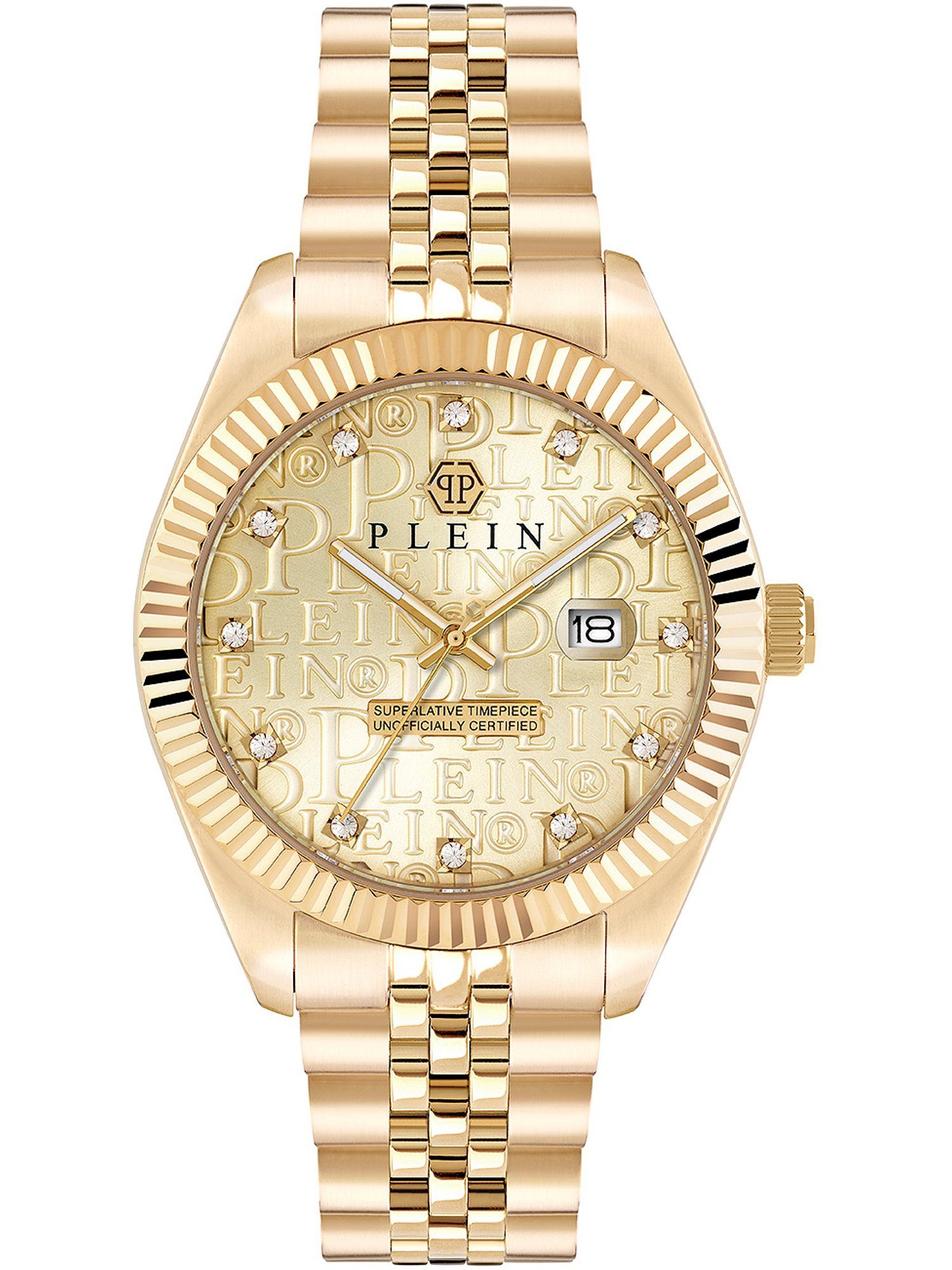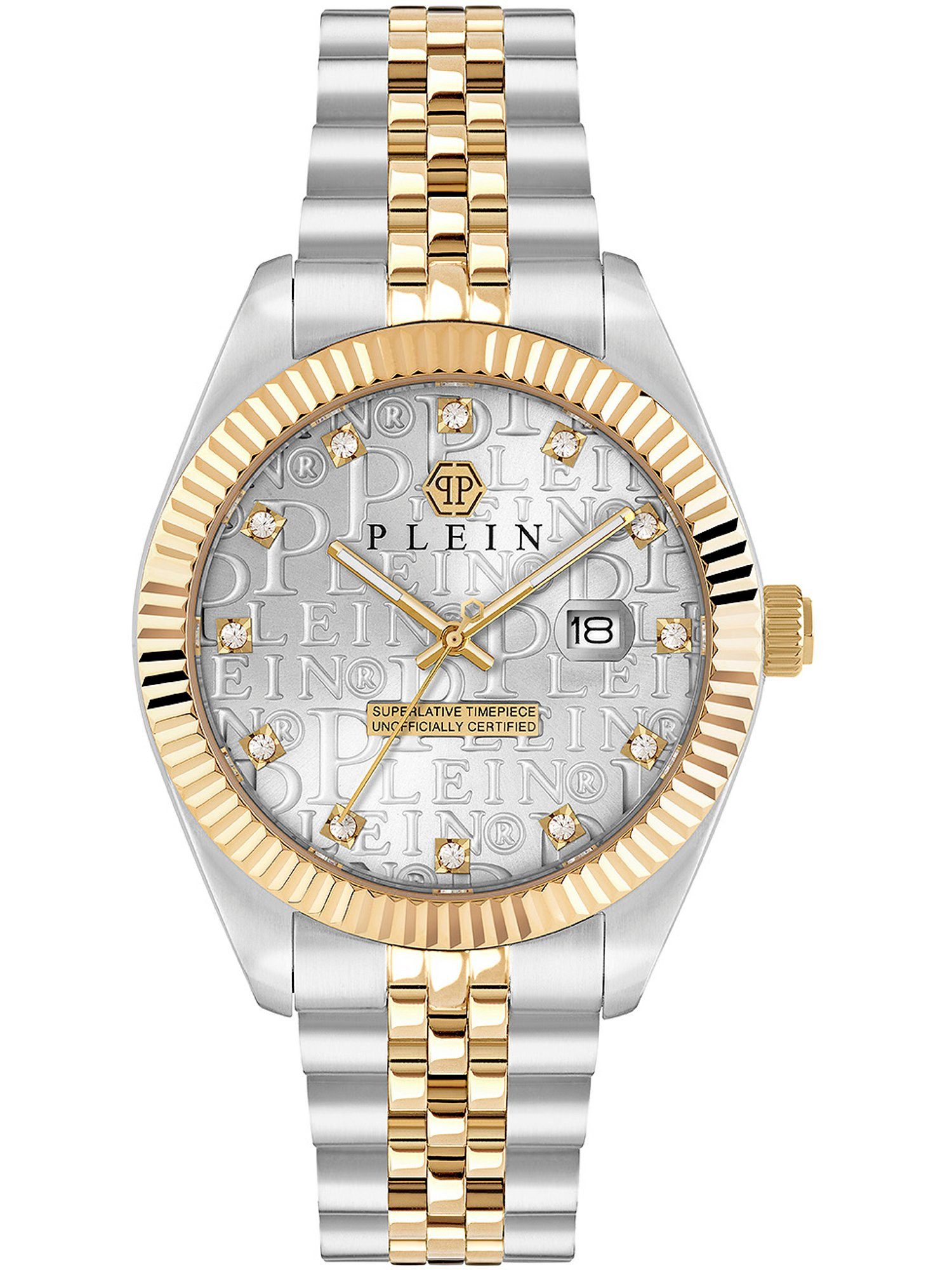 Philipp Plein Uhren sind alles andere als zurückhaltend – sie strahlen Luxus und Provokation aus. Mit kraftvollen Designs und auffälligen Details zeigst du Selbstbewusstsein und Stil. Diese Uhren sind für alle, die das Besondere lieben. Trendiges Design, innovative Details Ein sportlich-eleganter Klassiker ist diese Herrenuhr mit Edelstahl-Gehäuse an einem unkomplizierten Edelstahl-Band. Gehäuse und Armband der Philipp Plein Date Superlative Gent sind in Silber gehalten. Das schwarze Ziffernblatt ist eine harmonische Ergänzung. Ob du ein schmales oder breiteres Handgelenk hast, ist egal: Das runde Gehäuse mit einem Durchmesser von 41 mm sieht definitiv an jedem Arm gut aus. Die nötige Präzision wird durch ein Quarzwerk gewährleistet. Dank der Date Superlative Gent weißt du nicht nur immer die richtige Zeit, sondern auch das aktuelle Datum. Eine individuelle Note für deinen Look Das verwendete Mineralglas bietet eine gute Sicht und ist widerstandsfähig gegen alle Einflüsse, die bei normalem Gebrauch entstehen. Du kannst dich auf diesen Zeitmesser immer verlassen: Er ist bis zu 50 Meter (5 Bar) wasserdicht und hält damit den Belastungen beim Händewaschen und Baden stand. Eins steht fest: Wer seinem Look eine individuelle Note verleihen möchte, macht mit der stilvollen Philipp Plein Date Superlative Gent Herrenuhr alles richtig. Worauf wartest du also noch?