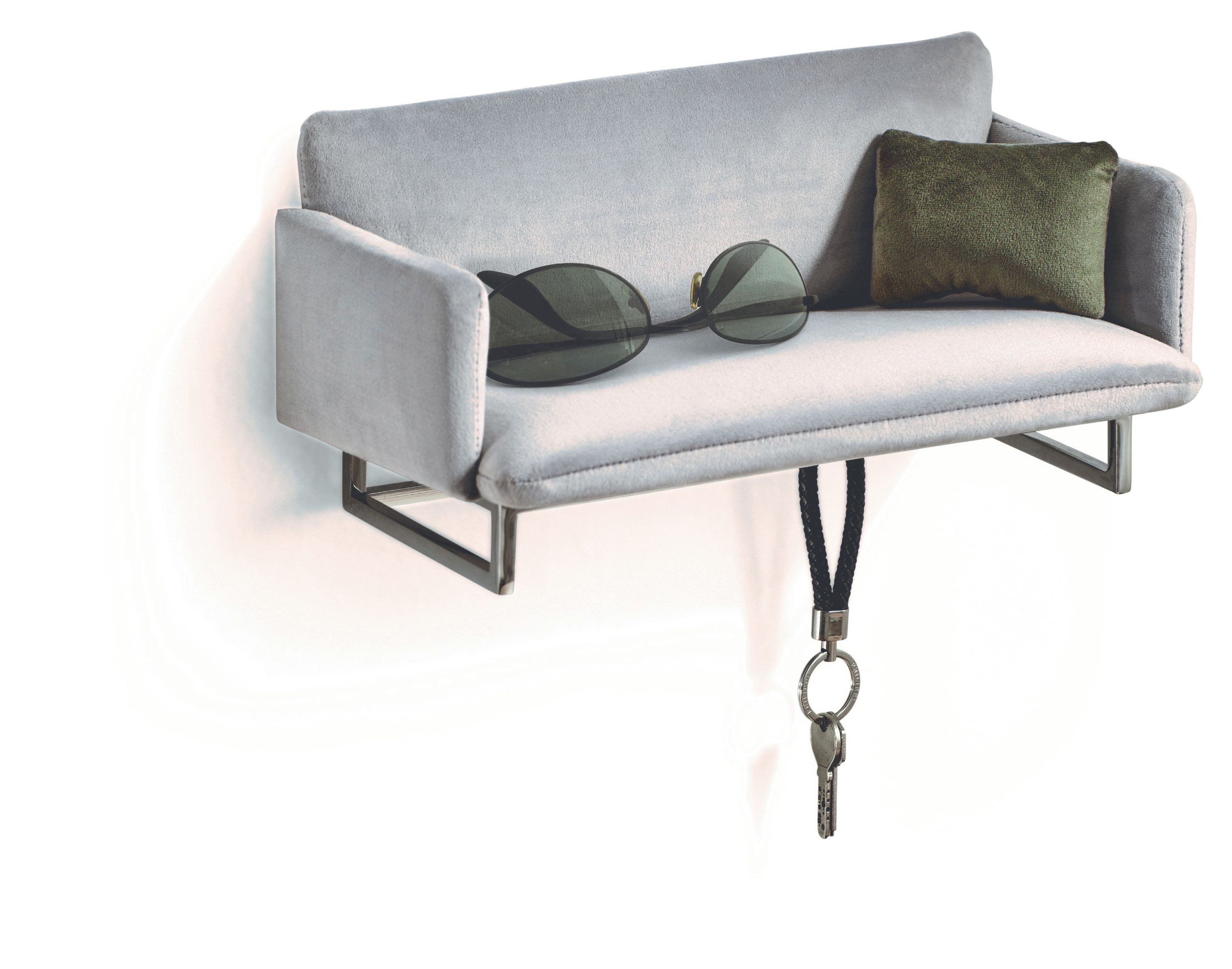 Nach Hause kommen und sofort auf die COUCH, erhält ab sofort eine vollkommen neue Bedeutung. Die ultraschicke Miniatur-Ausgabe hängt nämlich gleich an der Wand im Eingangsbereich ab. Mit dem Pocket Emptier sind die Taschen in nullkommanichts geleert â“ Kartenetui, Smartphone, Sonnenbrille und andere Accessoires machen es sich neben dem dazugehörigen Kissen bequem und bleiben an diesem festgelegten Ort, ohne suchen zu müssen, allzeit griffbereit. Schlüssel verweilen übersichtlich unterhalb an einem der drei Haken. Falls diese Sitzgelegenheit tatsächlich eleganter aussieht als die große Schwester im Wohnzimmer, sollte man sich allerdings noch mal Gedanken machen...