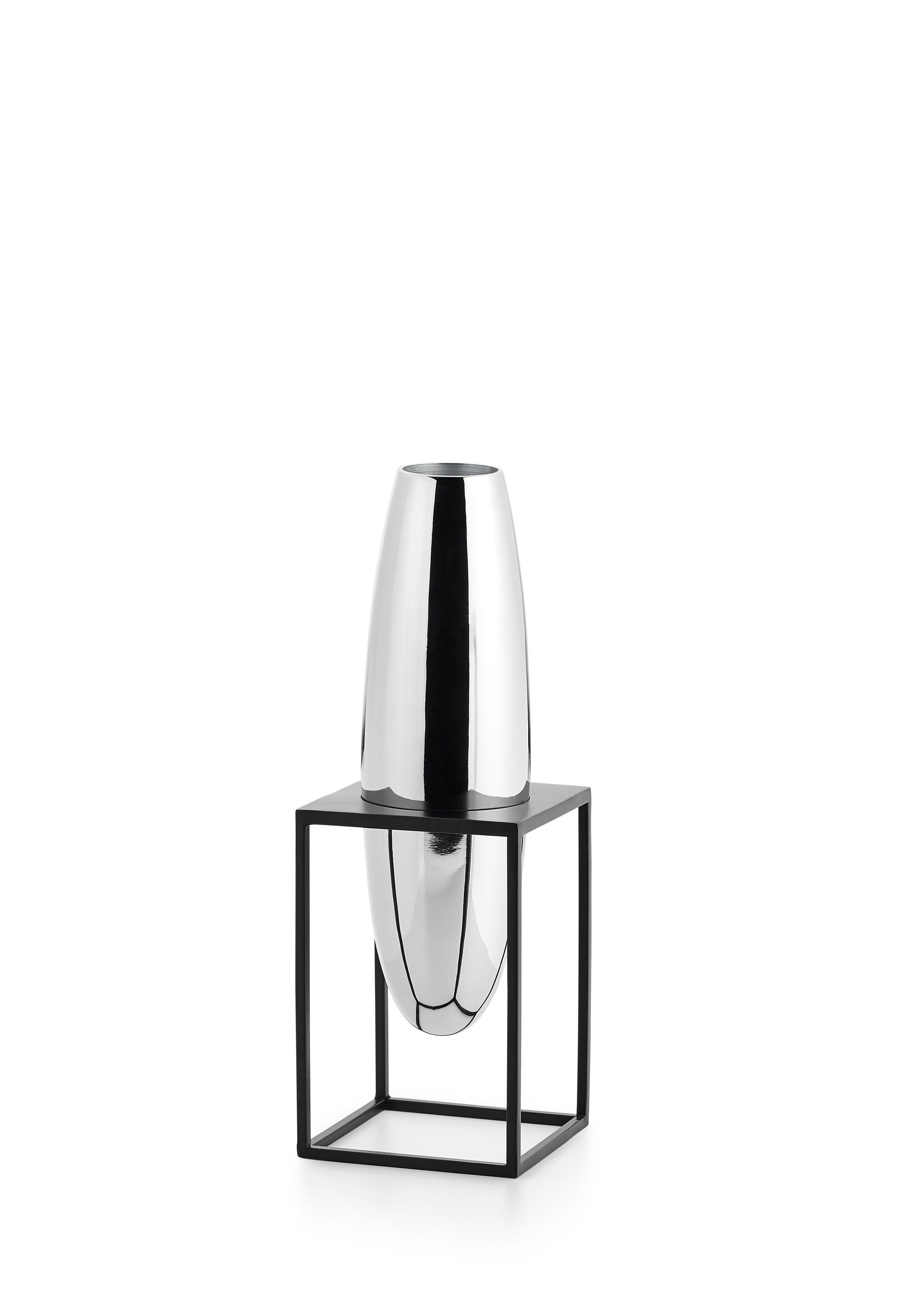 Lieferumfang1x Solero Vase im Ständer, S Nickel, hochglanzpoliert, Stahl, pulverbeschichtet