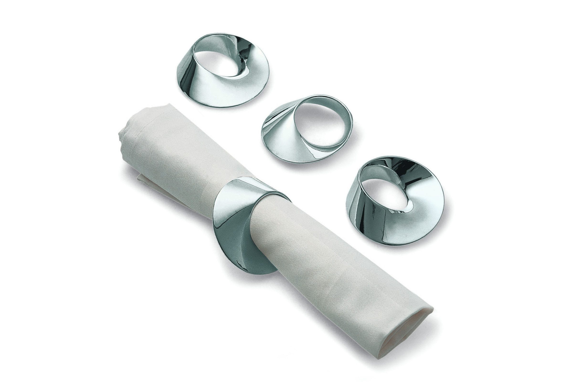 Stilvoll, elegant und vor allem äußerst originell: so präsentieren sich die Serviettenringe SWIRL mit ihrem geschwungenen Design. Die einmal um sich selbst gewundene Form ist so einzigartig, dass SWIRL seit 2004 als echter Klassiker gilt. Und das generationsübergreifend, denn diese Serviettenringe verschönern wirklich jede Tafel - unabhängig von Stil und Anlass.