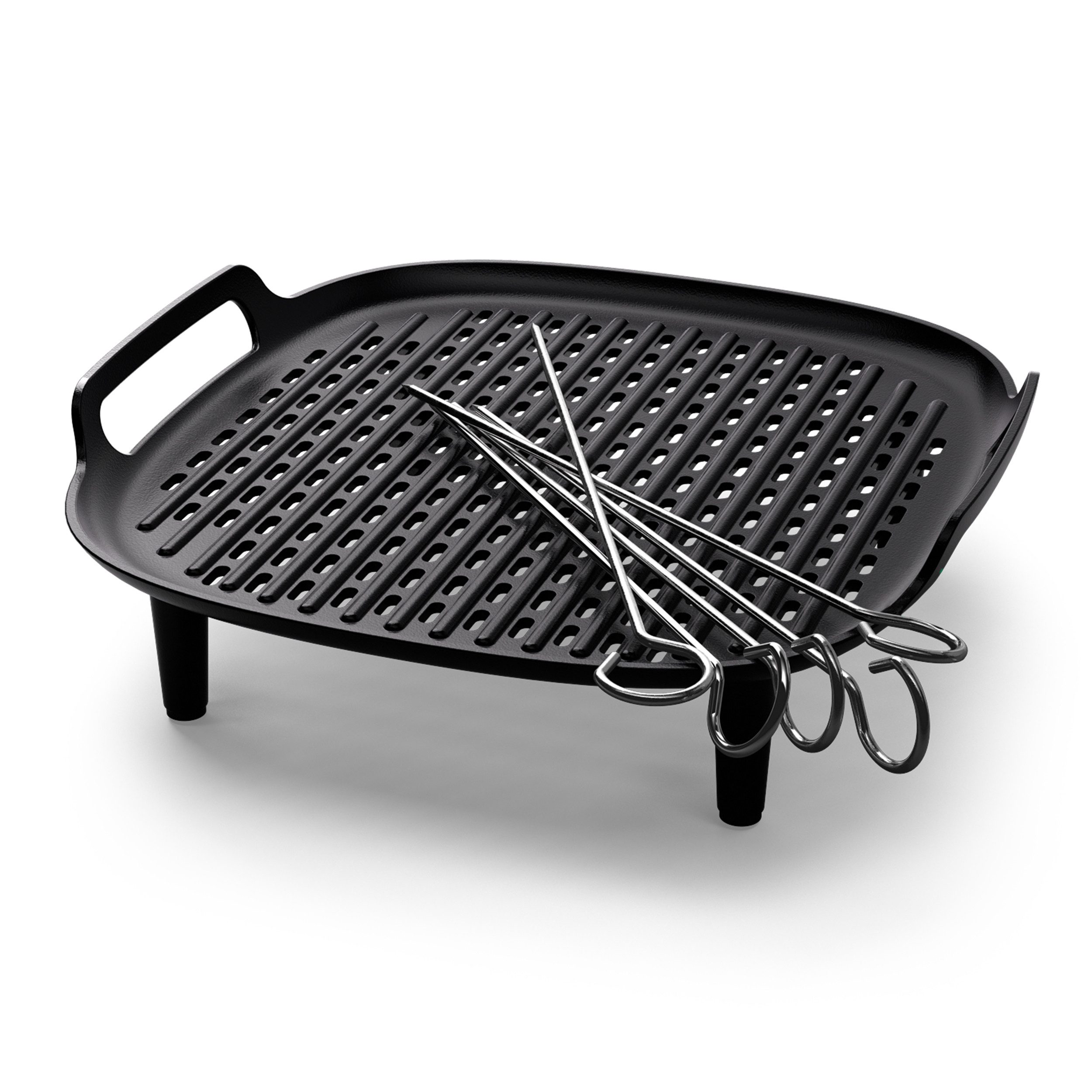 Farbe | schwarze Grillpfanne, silberne Spieße |