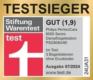 Die Philips PerfectCare 6000 Series PSG6064/80 erzielt im Vergleichstest des Magazins „test“ der „Stiftung Warentest“ mit einer weiteren Bügelstation ohne Druckboiler das Gesamtergebnis „GUT (1,9)“. Die „gute“ Bügelleistung überzeugt sowohl bei Mischgewebe als auch bei Seiden-, Baumwoll- und Leinentextilien. Die Bügeltemperatur ist sehr ausgewogen, die Dampffunktion ist „sehr gut“ und das Gerät gleitet „sehr gut“. Außerdem punktet die einfache Handhabung. Insgesamt erreicht das Modell das beste Testergebnis und ist ein „PREISTIPP“.