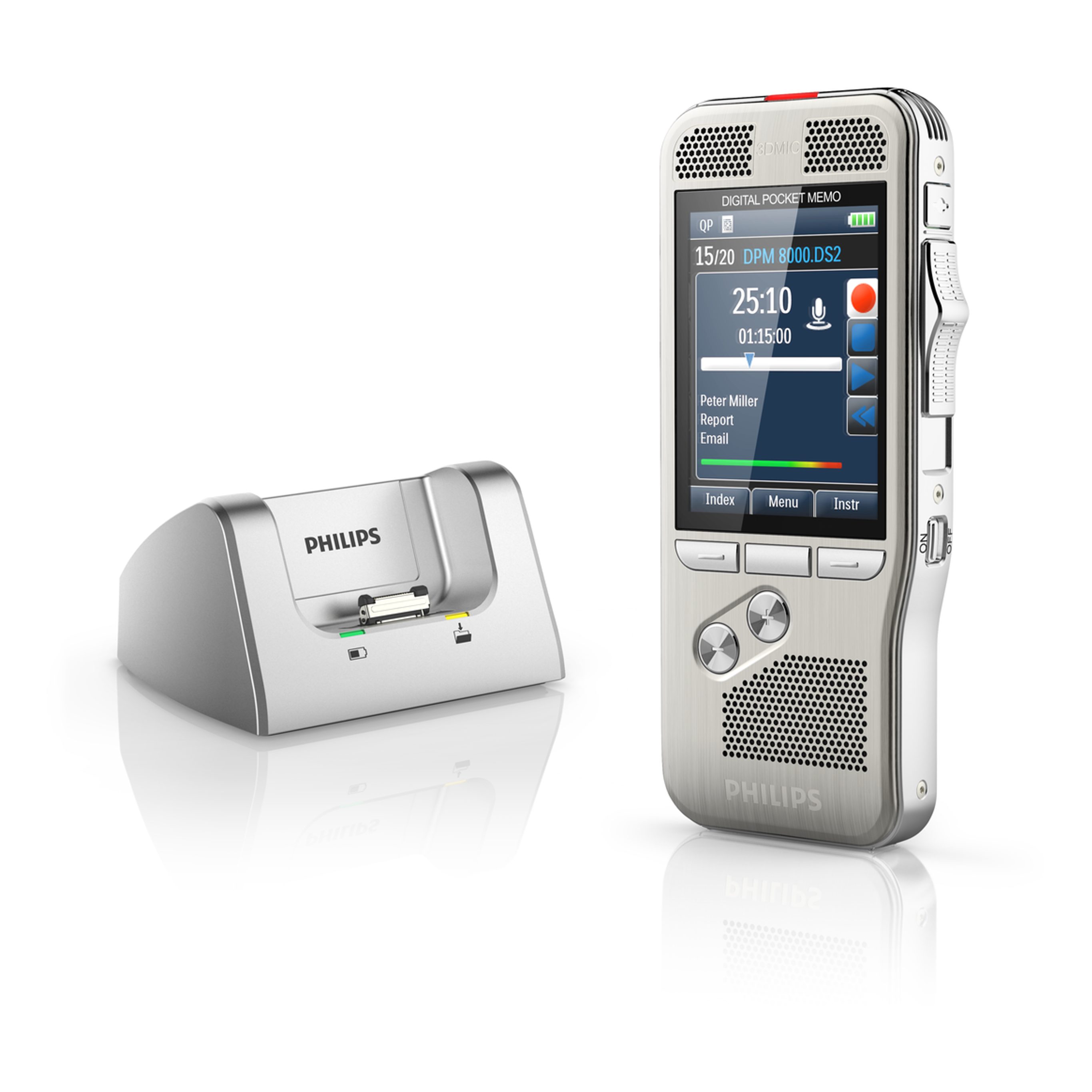 Lieferumfang | PocketMemo Diktiergerät, Dockingstation, Speicherkarte, Akku, USB-Kabel, Tasche, Benutzerhandbuch |
