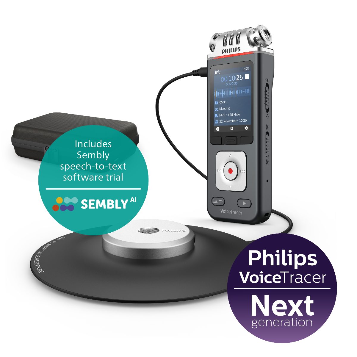 Lieferumfang | DVT6110 Recorder 360°-Meeting-Mikrofon mit integriertem Line-in-Kabel Sembly-Gutschein (DVT8115) USB-C-Kabel Tasche Kurzanleitung |