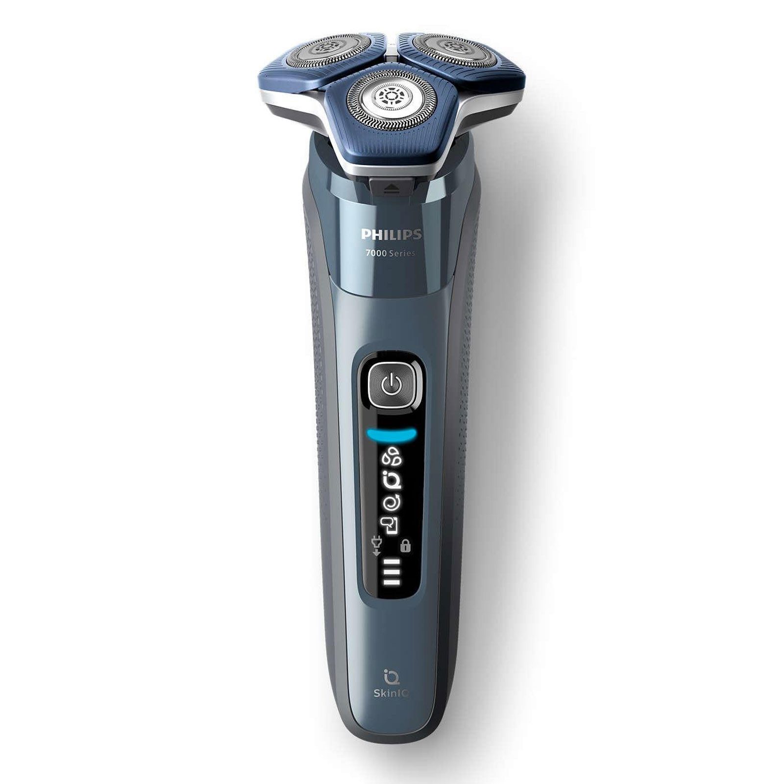 Der Philips S7882/55 Series 7000 Herrenrasierer bietet eine gründliche und hautschonende Rasur dank modernster SkinIQ Technologie. Ausgestattet mit SteelPrecision Klingen und einer Nano SkinGlide Beschichtung gleitet er besonders sanft über die Haut und reduziert Reibung sowie Hautirritationen. Die flexiblen 360-Grad-Scherköpfe passen sich jeder Kontur des Gesichts optimal an und ermöglichen eine effektive Rasur selbst an schwer erreichbaren Stellen. Für besonders präzise Ergebnisse sorgt der integrierte Präzisionstrimmer. Der Rasierer ist sowohl für die Trocken- als auch für die Nassrasur geeignet und kann problemlos unter der Dusche verwendet werden. Über das LED-Display werden Informationen wie Akkustand und Reinigungsstatus klar angezeigt. Die Akkulaufzeit beträgt bis zu 60 Minuten, eine Schnellladung für eine Rasur ist in nur 5 Minuten möglich.
