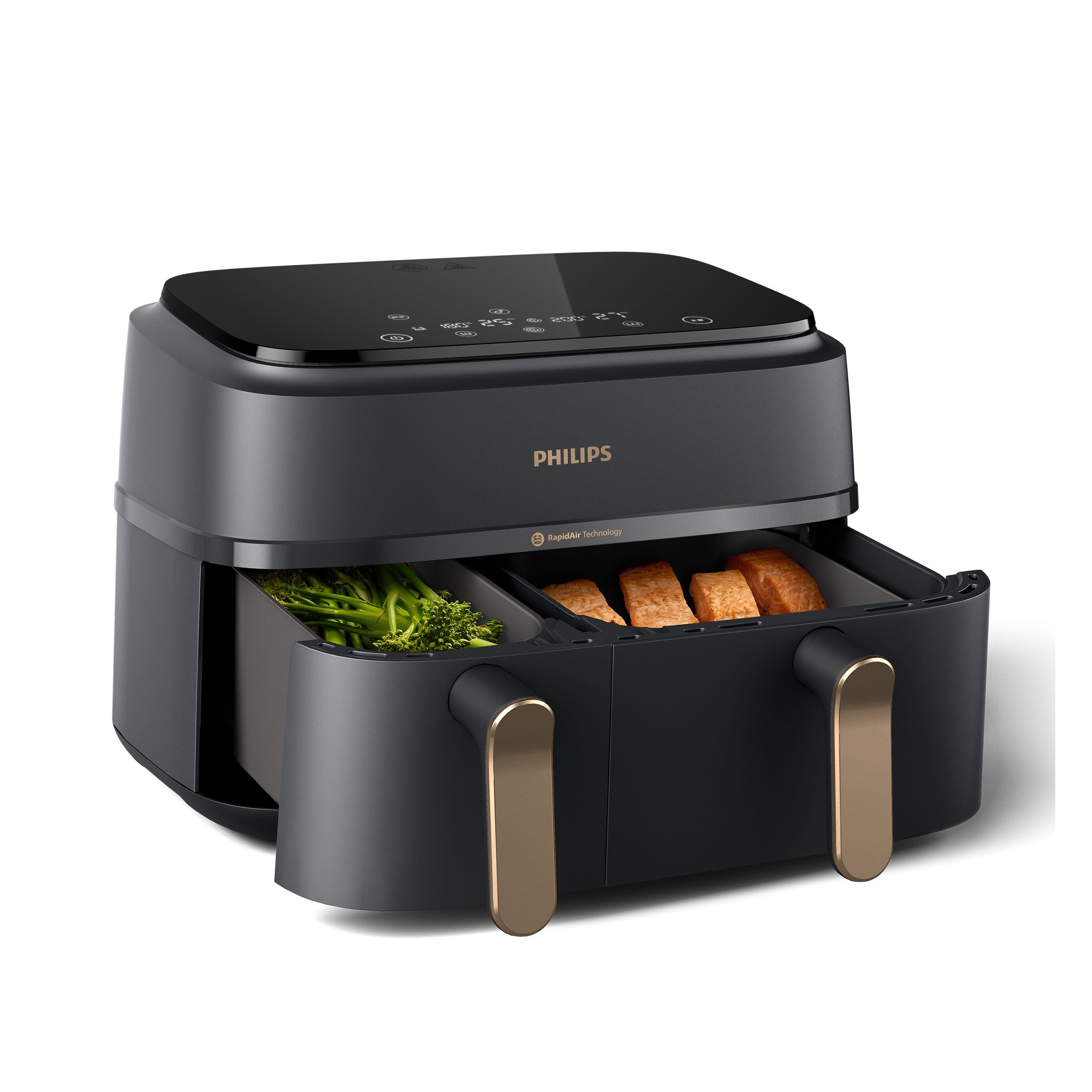 Philips Heißluftfritteuse 3000 Series NA352/00, Dual Basket Airfryer mit 9L Kapazität (3L+6L), 2750 W, RapidAir Technologie und 12 Kochfunktionen; Schwarz