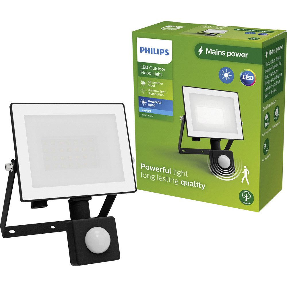 Dieser leistungsstarke Philips Außenstrahler ist netzbetrieben und verfügt über einen eingebauten Bewegungssensor, der sich automatisch einschaltet, wenn er eine Bewegung erkennt, um die Sicht zu verbessern und das Sicherheitsgefühl zu Hause zu erhöhen