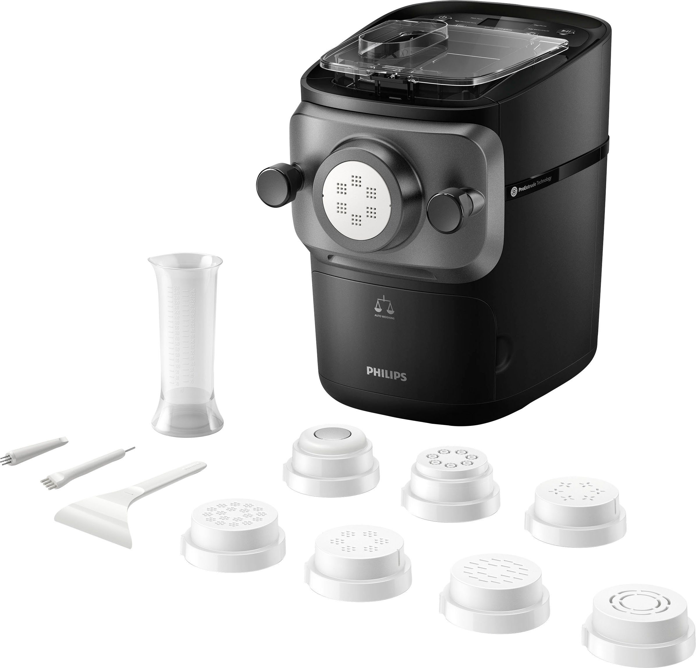 Впередe Vorteile | Bringen Sie mit der Philips 7000-Serie hausgemachte Pasta wieder auf die Speisekarte. Mach das glatt, Leicht zu reinigendes widerstandsfähiges Design: Elegantes und widerstandsfähiges Design, das zu jeder Einrichtung passt, und gleichzeitig für eine lang anhaltende Nudelzubereitung sorgt. Die antihaftbeschichteten und spülmaschinenfesten Teile ermöglichen eine mühelose Zubereitung frischer Nudeln. Mit 8 Formscheiben: Lasagne, Penne, Fettuccini, Spaghetti, Cappellini (Engelshaar), Spaghettoni, Tagliatelle und Pappardelle. Nahtlose Technologie für leckere Pasta in weniger als 10 Minuten federndes Finish mit der ProExtrude-Technologie und genießen Sie wohlschmeckende Pasta mit dem perfekte Misch- und automatische Wiegefunktionen in weniger als 10 Minuten* |