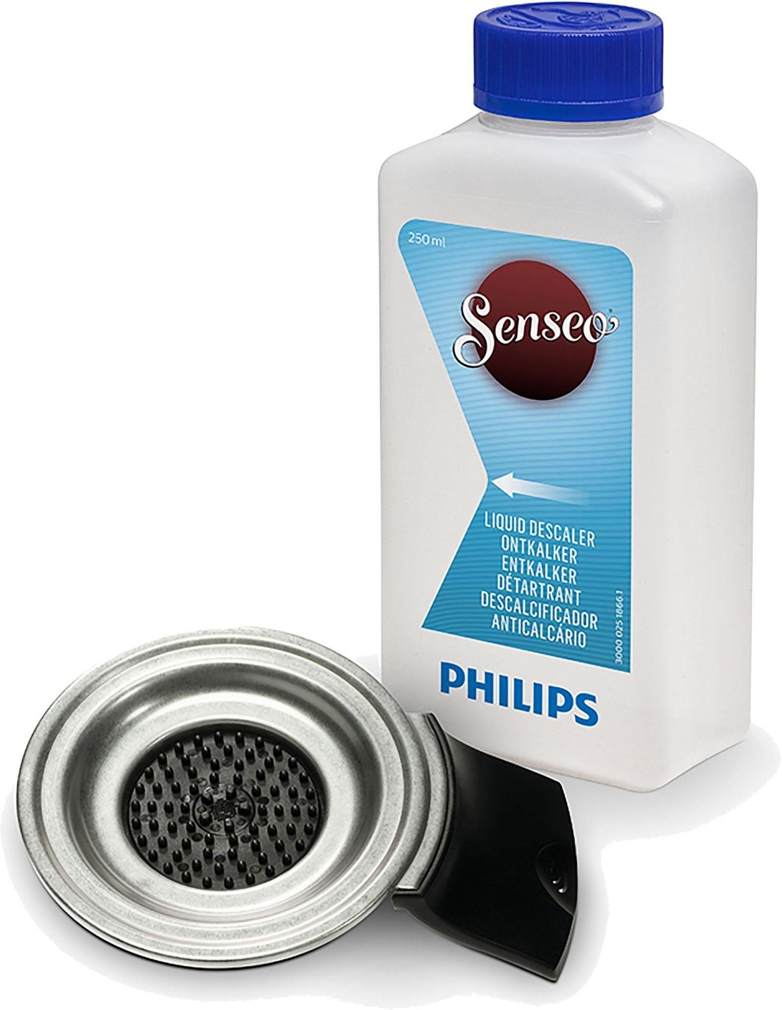 Впередe Vorteile | 'Das Entkalken ist ein wichtiger Bestandteil der Wartung Ihrer SENSEO® Padmschine und sollte wenigstens alle drei Monate durchgeführt werden. Das regelmäßige Entfernen von Kalkablagerungen stellt das maximale Fassungsvermögen sowie die maximale Kaffeetemperatur sicher. Es entstehen weniger Geräusche bei der Zubereitung des Kaffees, Fehlfunktionen wird vorgebeugt und die Lebensdauer verlängert. Entkalker für alle SENSEO®: Genießen Sie Ihre Maschine länger, wenn Sie sie regelmäßig mit SENSEO® Entkalker behandeln. Padhalter für 1 Tasse: Bewahren Sie den Zustand Ihrer SENSEO® Kaffeemaschine mit dem regelmäßigen Austausch von Ersatzteilen. Speziell für SENSEO® entwickelt: Die in diesem Entkalker verwendete Zitronensäure verbessert die Entkalkungsleistung, ohne Ihre SENSEO® zu beschädigen. Der Philips Padhalter bekomt den richtigen Druck für besten Kaffeegenuss. Zugelassenes Philips Zubehör: Stellen Sie sicher, dass Sie nur zugelassene Original Zubehör- und Ersatzteile verwenden. |