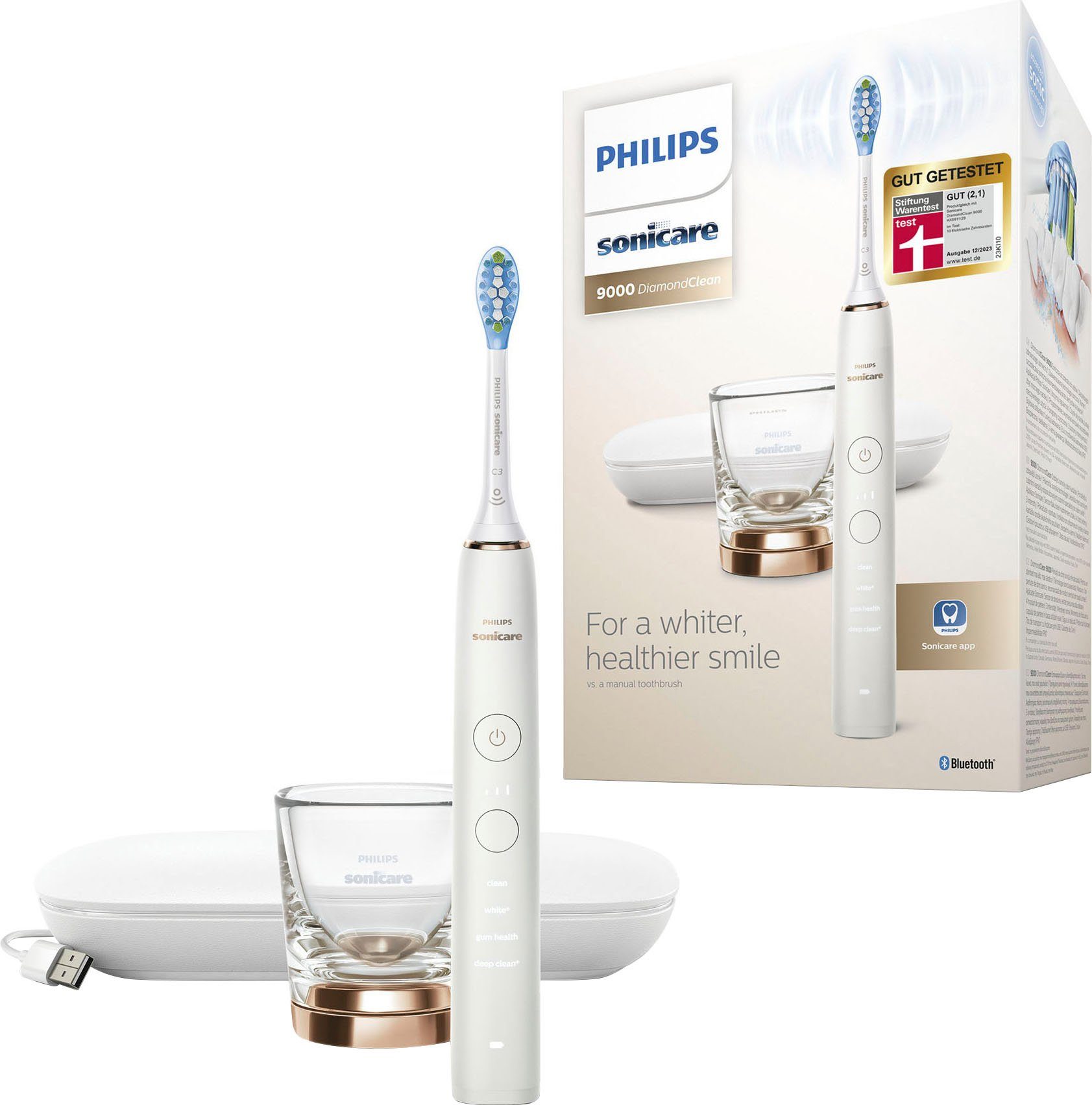 Philips Sonicare Elektrische Zahnbürste DiamondClean 9000 HX9911, Aufsteckbürsten: 1 St., mit Schalltechnologie, Ladeglass, USB-Reiseetui