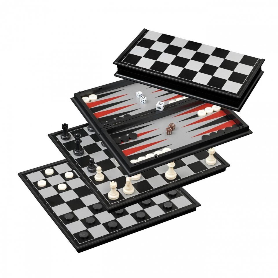 1 x Schach Backgammon Dame Set - Kunststoff - Feld 37 mm - magnetisch