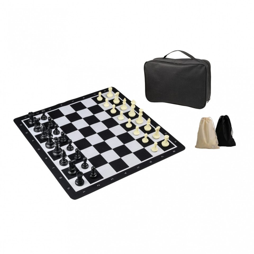 1 x Schachset - rollbar - Feld 55 mm - mit Kunstofffiguren und Tragetasche