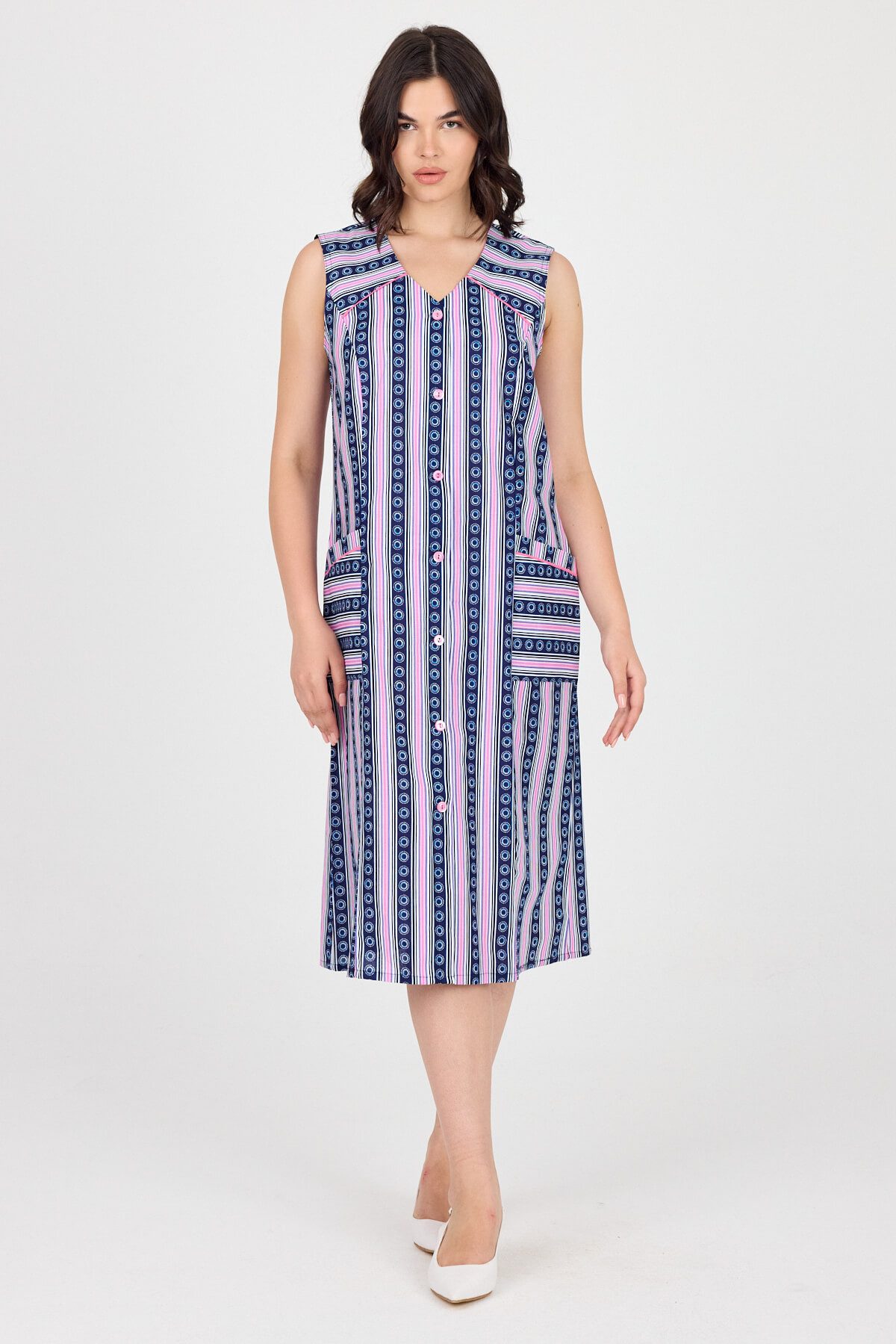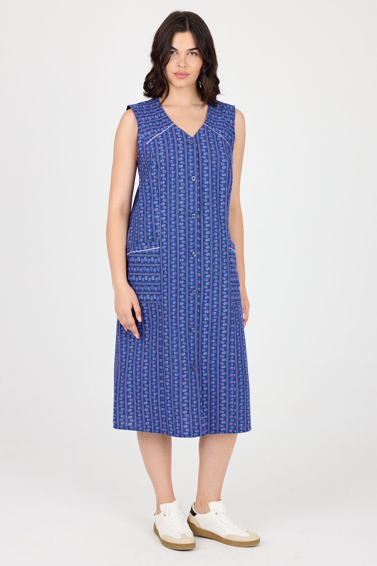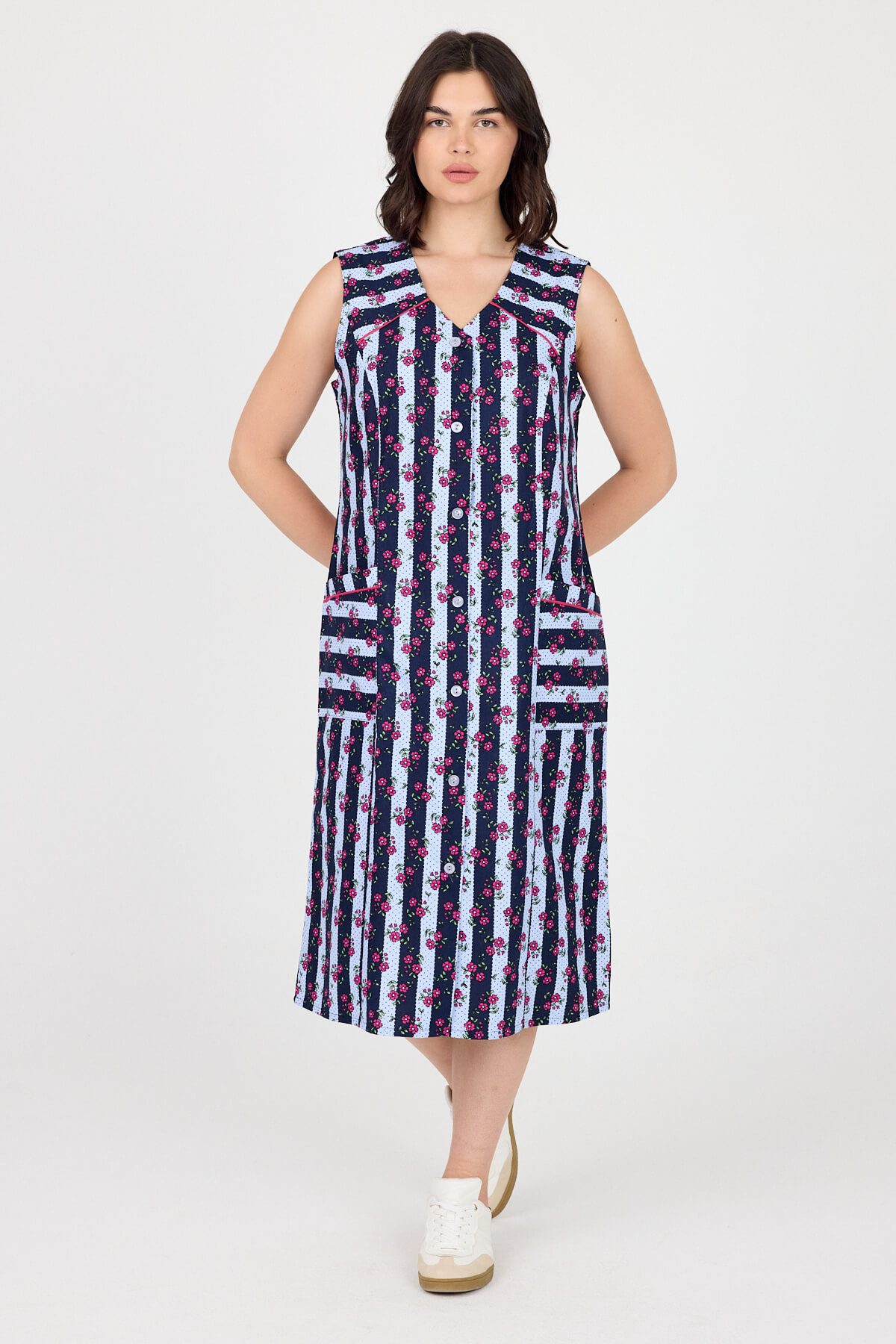 Damen-Arbeitskleid aus 100% Baumwolle mit kontrastierenden Paspeln Dieses praktische und stilvolle Arbeitskleid besteht aus hochwertigem, gewebtem 100% Baumwollstoff und überzeugt durch seine angenehme Haptik und Atmungsaktivität. Die kontrastreichen Paspeln an Schultern und Taschen verleihen dem Kleid einen modernen und eleganten Look. Komplett durchgehende Knopfleiste und taillierter Rücken Das Kleid ist vorne komplett mit Knöpfen versehen, die das An- und Ausziehen erleichtern. Der kurze Rückenbund sorgt für eine optimale Passform und betont die feminine Silhouette – ideal für den Alltag oder als Hauskleidung. Pflegeleicht und langlebig – Waschbar bei 40 Grad Das Kleid ist bei 40 Grad maschinenwaschbar und behält dabei seine Form und Farbe auch nach mehrmaligem Waschen. Eine perfekte Kombination aus Komfort, Funktionalität und Stil für modebewusste Frauen.
