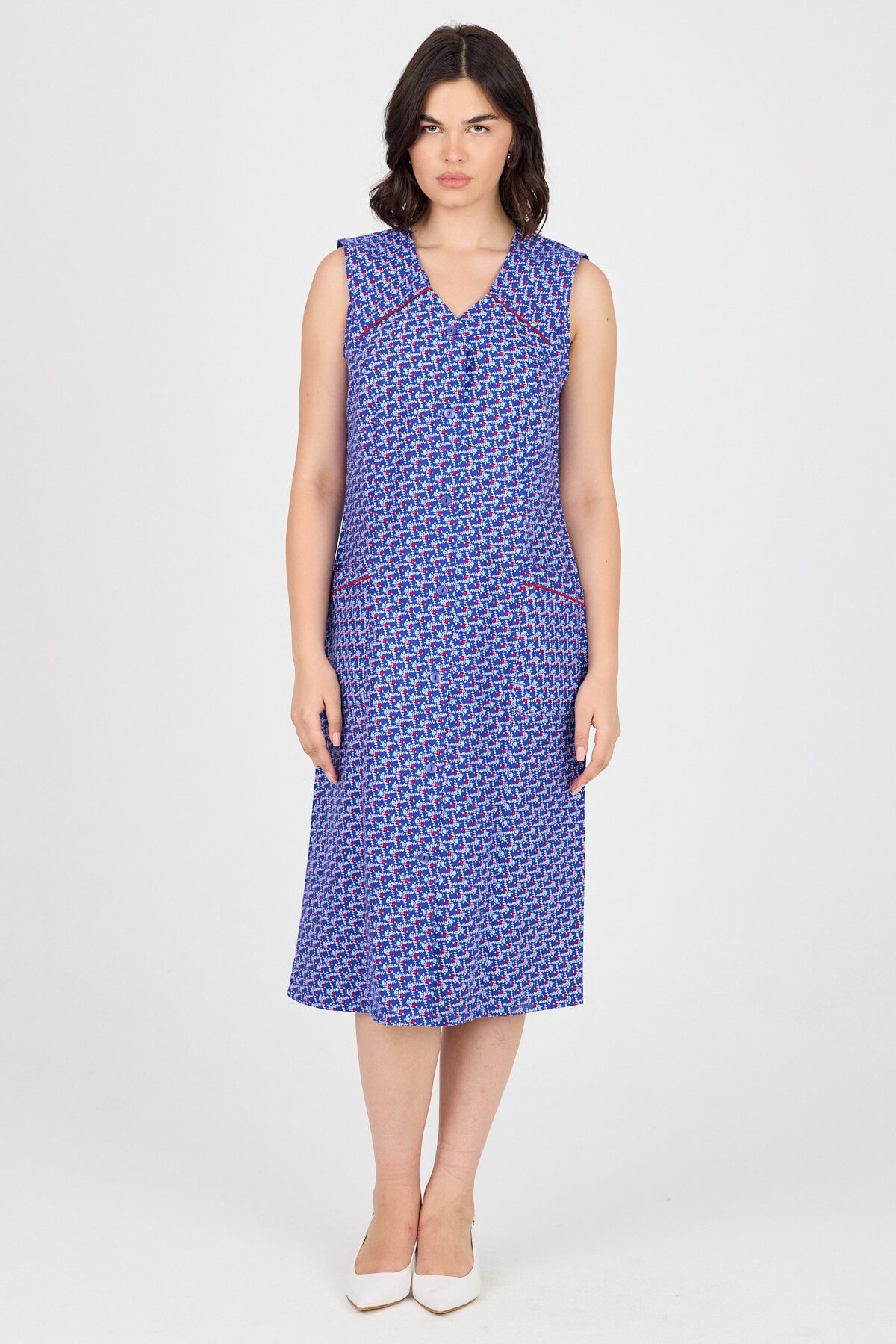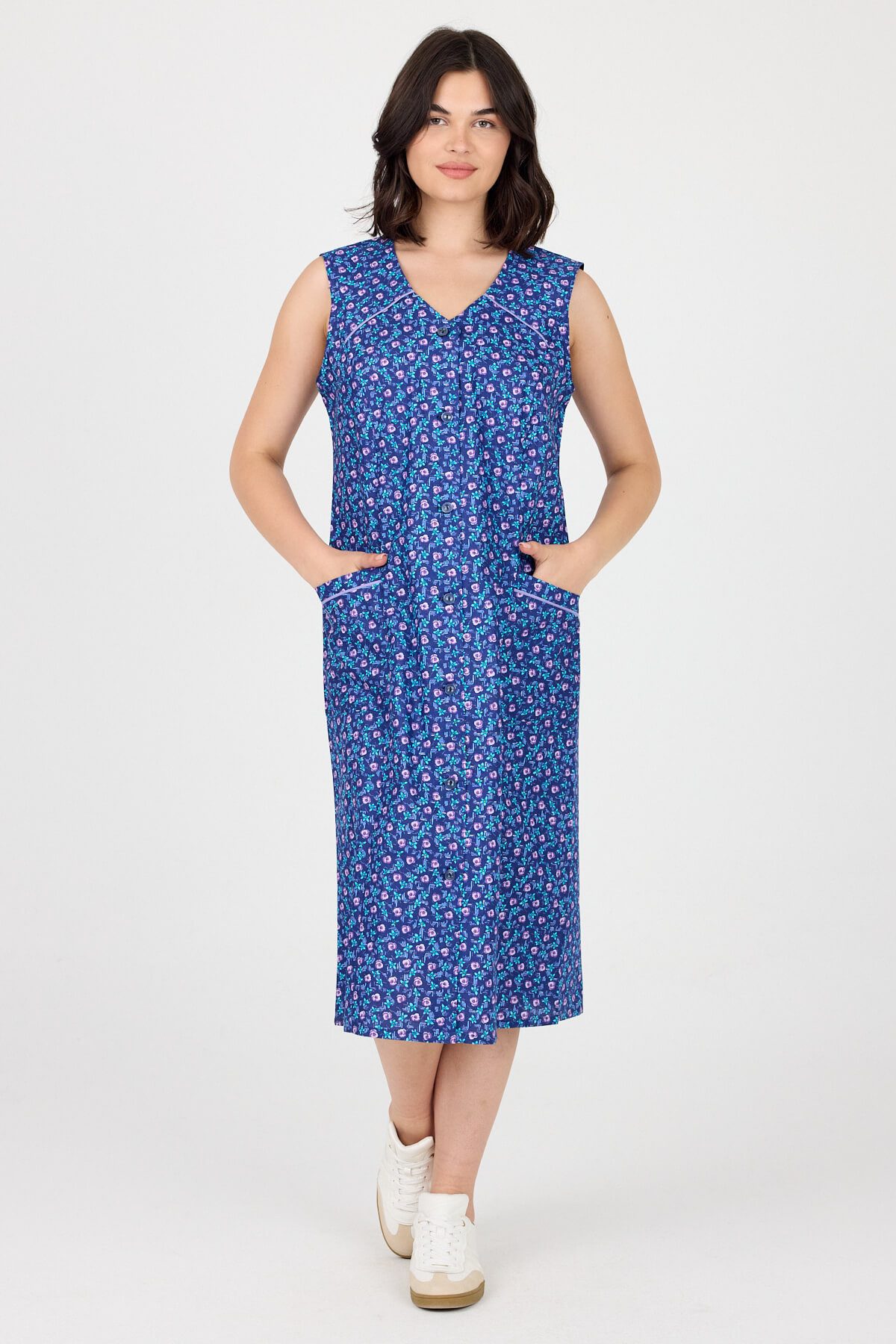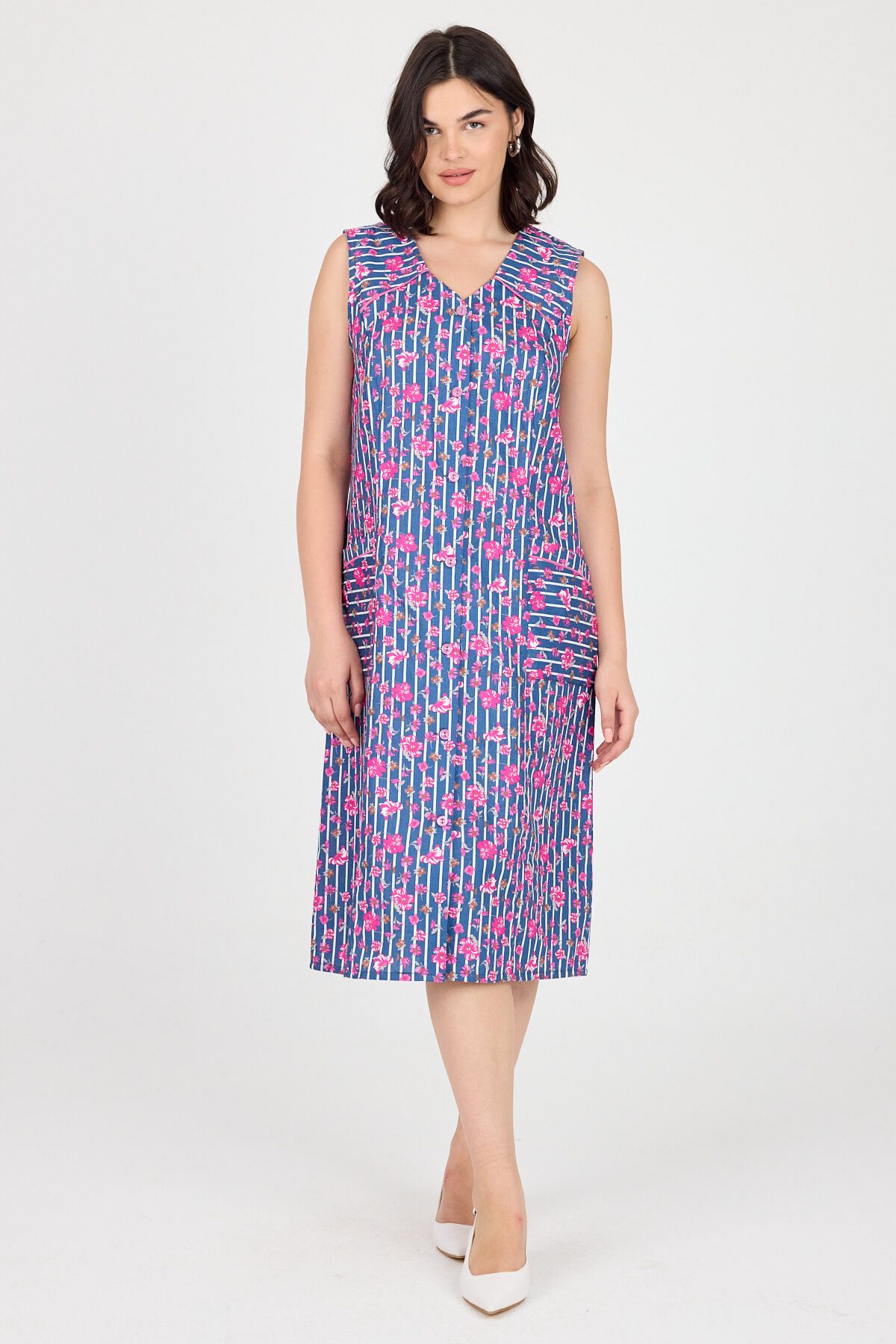 Damen-Arbeitskleid aus 100% Baumwolle mit kontrastierenden Paspeln Dieses praktische und stilvolle Arbeitskleid besteht aus hochwertigem, gewebtem 100% Baumwollstoff und überzeugt durch seine angenehme Haptik und Atmungsaktivität. Die kontrastreichen Paspeln an Schultern und Taschen verleihen dem Kleid einen modernen und eleganten Look. Komplett durchgehende Knopfleiste und taillierter Rücken Das Kleid ist vorne komplett mit Knöpfen versehen, die das An- und Ausziehen erleichtern. Der kurze Rückenbund sorgt für eine optimale Passform und betont die feminine Silhouette – ideal für den Alltag oder als Hauskleidung. Pflegeleicht und langlebig – Waschbar bei 40 Grad Das Kleid ist bei 40 Grad maschinenwaschbar und behält dabei seine Form und Farbe auch nach mehrmaligem Waschen. Eine perfekte Kombination aus Komfort, Funktionalität und Stil für modebewusste Frauen.