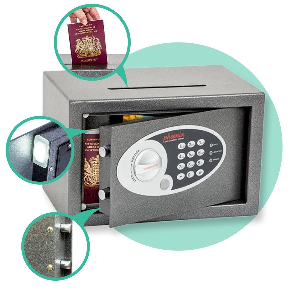 Der Phoenix VELA DEPOSIT SS0801ED Einwurftresor wurde speziell für den Einsatz zu Hause oder im Büro entwickelt, um Wertgegenstände, Bargeld und wichtige Dokumente sicher aufzubewahren. Mit seinem hochwertigen, benutzerfreundlichen elektronischen Schloss ist er vielseitig einsetzbar und bietet erstklassige Sicherheit.Produktspezifikationen: