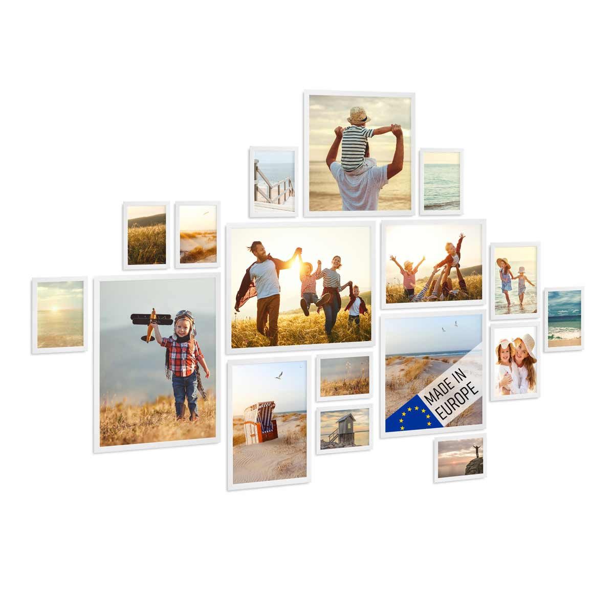 Die oben genannten Maße entsprechen dem jeweils passenden Bild-Format. Der sichtbare Bild-Ausschnitt ist ca. 1 cm kleiner. Все Bilderrahmen lassen sich im Hoch- oder Querformat an die Wand hängen. (Motive und Dekoration sind nicht im Lieferumfang enthalten.)