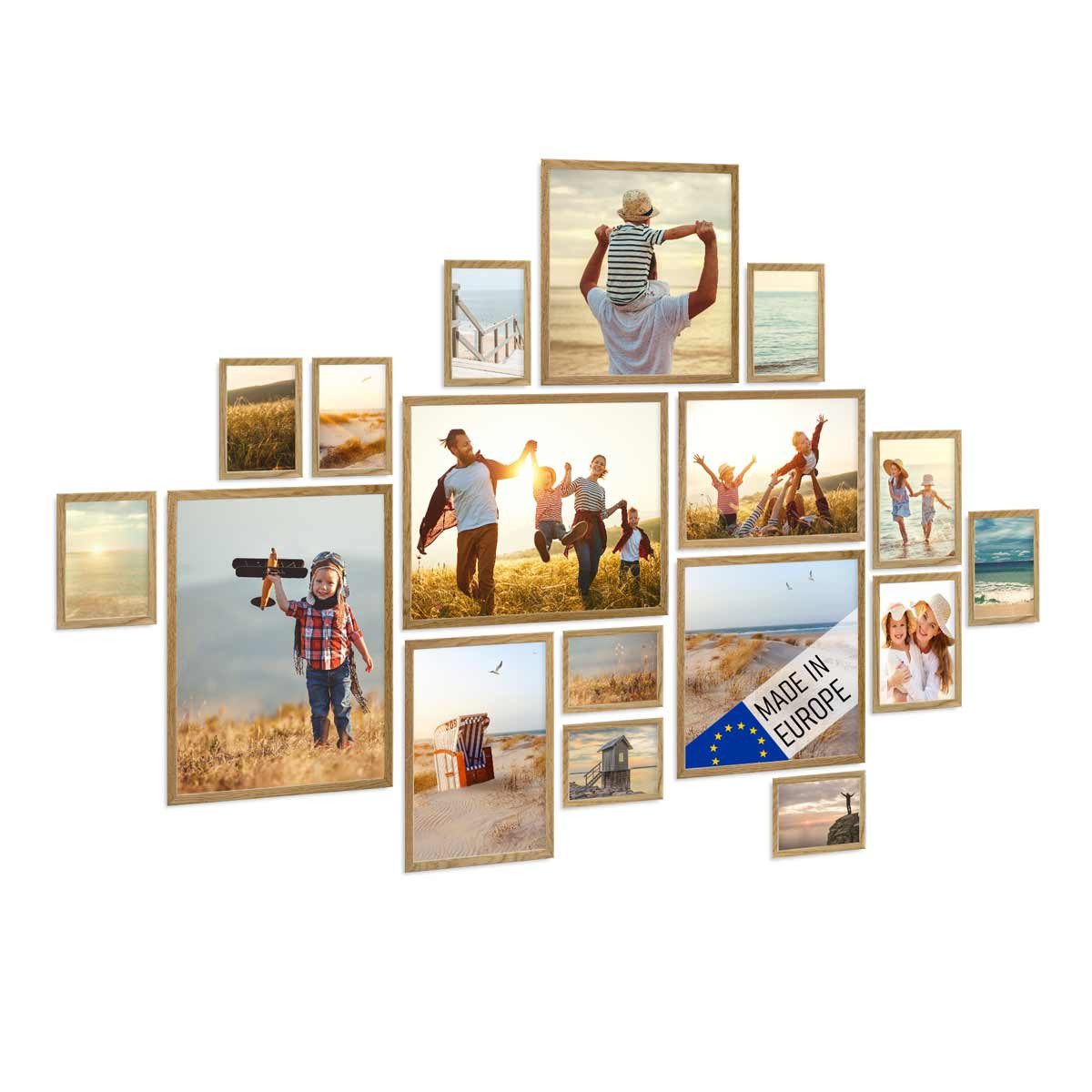 Zeitlose Holzbilderrahmen mit bruchsicherer Acrylglasscheibe. Durch den schnörkellosen Look passen die Holzrahmen zu fast jedem Einrichtungsstil. Insbesondere für die langfristige Dekoration von Wohnzimmer, Flur, Küche oder Schlafzimmer sind die zeitlosen Holz-Bilderrahmen perfekt geeignet. Mit ihrem geradlinigen Schnitt und ihrem zurückhaltenden Farbton kommen die Bilderrahmen aus Echtholz in jedem Raum bescheiden zur Geltung. Fotos, Urlaubsbilder oder andere Erinnerungsstücke werden aufgehängt an der Wand dezent in Szene gesetzt, wobei der Fokus auf das Motiv gelenkt wird. Mit diesen Bilderrahmen lässt sich eine zeitlose Bilderwand mit individuellem Charakter ganz einfach selbst gestalten - egal ob die Bilderrahmen dabei ganz symmetrisch in einer Reihe, als Raster oder locker über die Wand verteilt angeordnet werden.