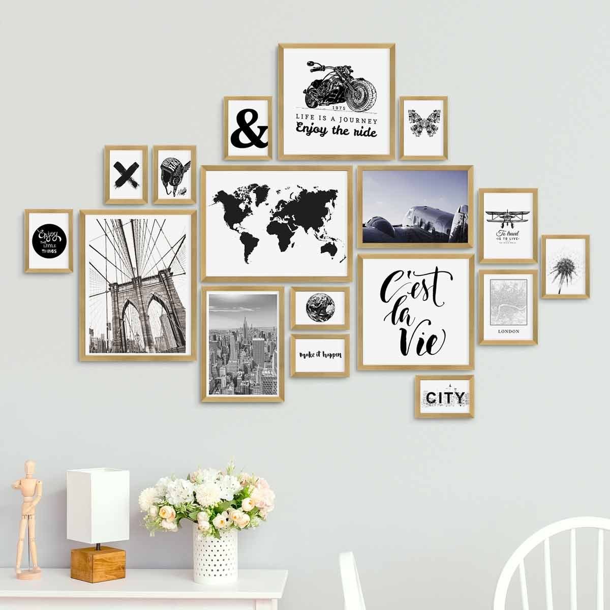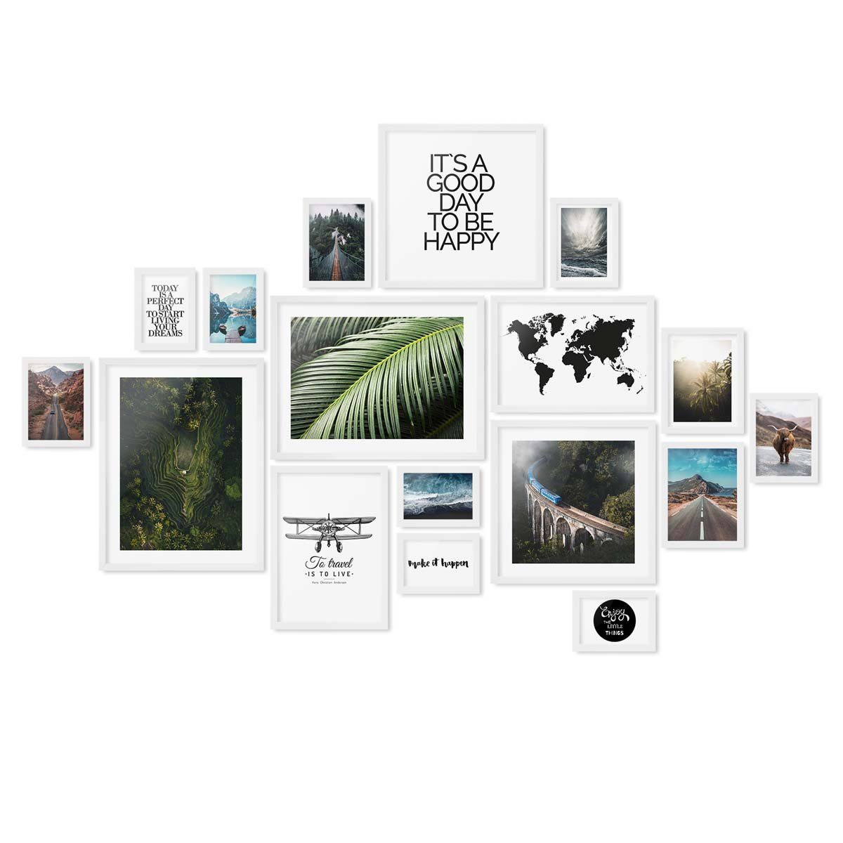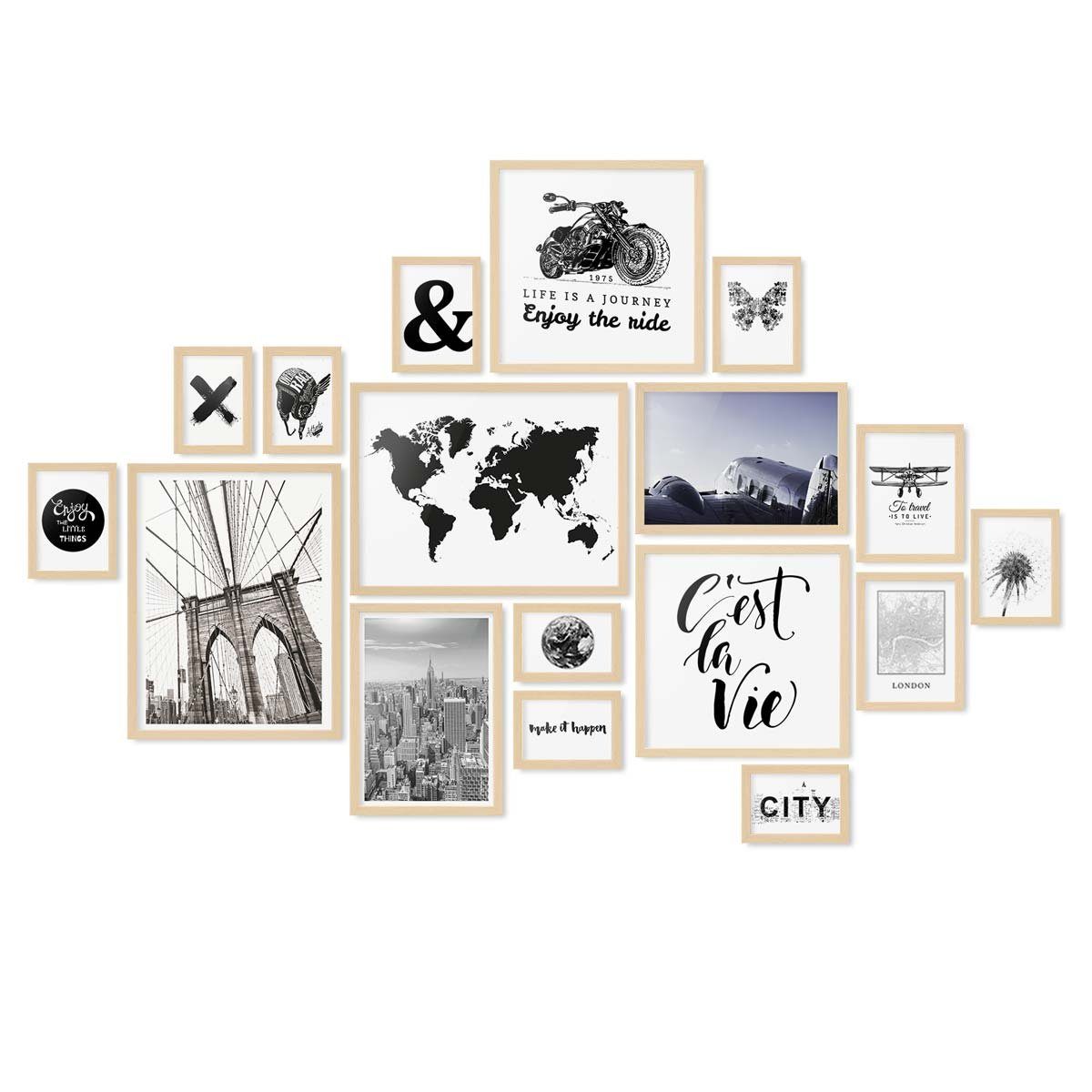 Bilderrahmen-Collage in Eiche Dunkel zur Gestaltung einer individuellen Bilderwand oder Bildergalerie - moderne Wechselrahmen aus MDF und praktisches Zubehör. Bilderwände haben einen ganz besonderen Charme und verleihen dem eigenen Zuhause einen individuellen Charakter. Sie sind eine tolle Möglichkeit um Fotos Postkarten Zeichnungen oder andere Erinnerungsstücke an der Wand in Szene zu setzen. Mit diesem Bilderrahmen-Set lässt sich eine individuelle Bilderwand einfach selbst gestalten. Die Bilderrahmen lassen sich zu unterschiedlichen Anordnungen und Arrangements kombinieren - ganz symmetrisch in einer Reihe als Raster oder locker über die Wand verteilt. Die Bilderwand lässt sich jederzeit erweitern und mit anderen Bilderrahmen-Sets ergänzen. (Motive und Dekoration sind nicht im Lieferumfang enthalten.)