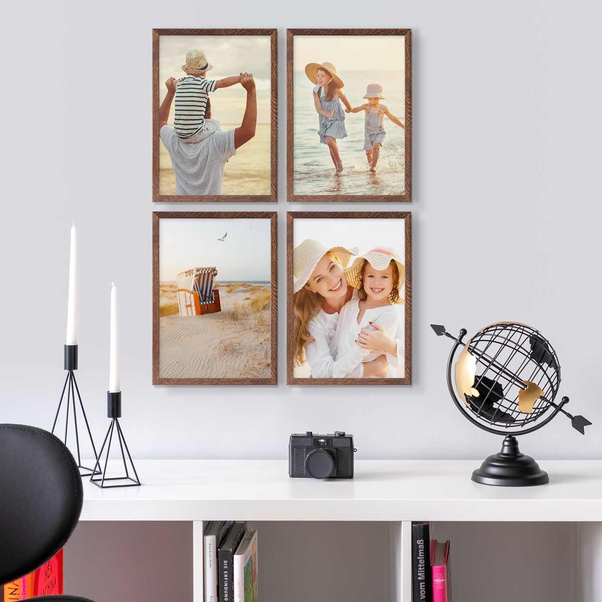 Zeitlose Holzbilderrahmen mit bruchsicherer Acrylglasscheibe. Durch den schnörkellosen Look passen die Holzrahmen zu fast jedem Einrichtungsstil. Insbesondere für die langfristige Dekoration von Wohnzimmer, Flur, Küche oder Schlafzimmer sind die zeitlosen Holz-Bilderrahmen perfekt geeignet. Mit ihrem geradlinigen Schnitt und ihrem zurückhaltenden Farbton kommen die Bilderrahmen aus Echtholz in jedem Raum bescheiden zur Geltung. Fotos, Urlaubsbilder oder andere Erinnerungsstücke werden aufgehängt an der Wand dezent in Szene gesetzt, wobei der Fokus auf das Motiv gelenkt wird. Mit diesen Bilderrahmen lässt sich eine zeitlose Bilderwand mit individuellem Charakter ganz einfach selbst gestalten - egal ob die Bilderrahmen dabei ganz symmetrisch in einer Reihe, als Raster oder locker über die Wand verteilt angeordnet werden.