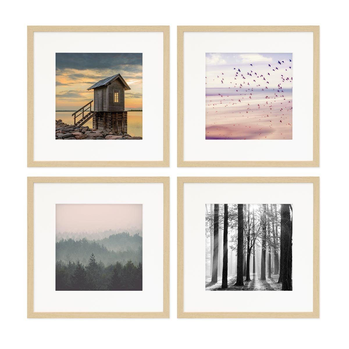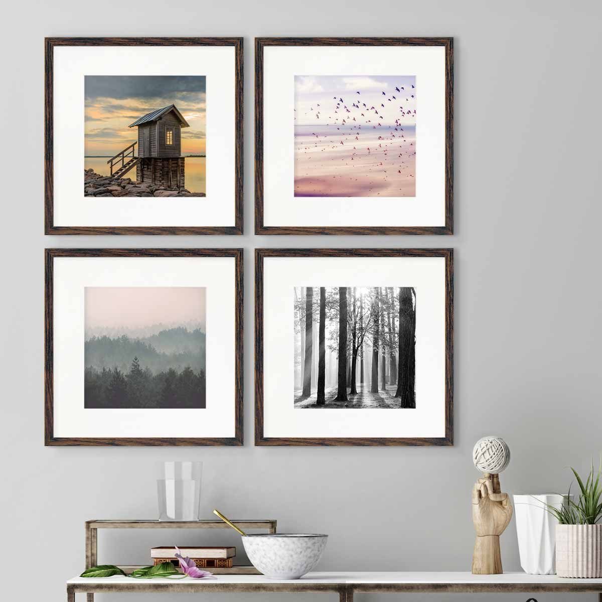 Moderne Posterrahmen aus MDF im Format 30x30 cm lenken durch ihre schlichte Optik den Blick auf das Motiv. Mit diesen Bilderrahmen lassen sich Bilder schön in Szene setzen oder kombiniert mit anderen Bilderrahmen, eine individuelle Bilderwand gestalten. Besonders mit eigenen Fotos, Postkarten, Zeichnungen oder anderen Erinnerungsstücken verleihen Sie Ihrem Zuhause einen individuellen Charakter. (Motive und Dekoration sind nicht im Lieferumfang enthalten.)