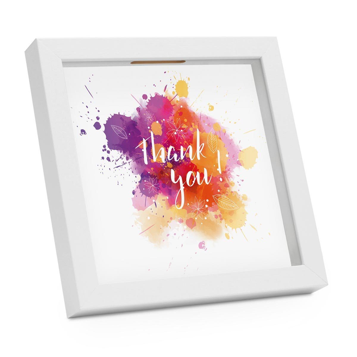 Im Handumdrehen sind Geldgeschenke zum Geburtstag originell verpackt mit dieser Bilderrahmen-Spardose. Dank der vier unterschiedlichen austauschbaren Hintergründe kann die Spardose als persönliche Sparbüchse für unterschiedliche Anlässe verwendet werden oder als kreatives Geldgeschenk zum Geburtstag, zur Hochzeit oder als Reisekasse für das nächste Abenteuer. Der breite Schlitz auf der Oberseite der Holzbox ermöglicht nicht nur das Einwerfen von Münzen und Geldscheinen sondern auch das Befüllen mit Karten, Tickets und anderen persönlichen Erinnerungsstücken mit einer Tiefe von bis zu 1,5 cm. Die Glasfront macht jede befüllte Holzbox zu einem einzigartigen Dekoartikel. Neben den beiliegenden Motiven lassen sich auch eigene Fotos, Bilder oder Zeichnungen als Hintergrund in die Bilderrahmen-Spardose einsetzen. Die Holzbox lässt sich dank der 3 cm tiefen Leiste einfach aufstellen oder mit Hilfe der mitgelieferten Bildernägel an die Wand hängen. (Dekoration und Geld sind nicht im Lieferumfang enthalten.)