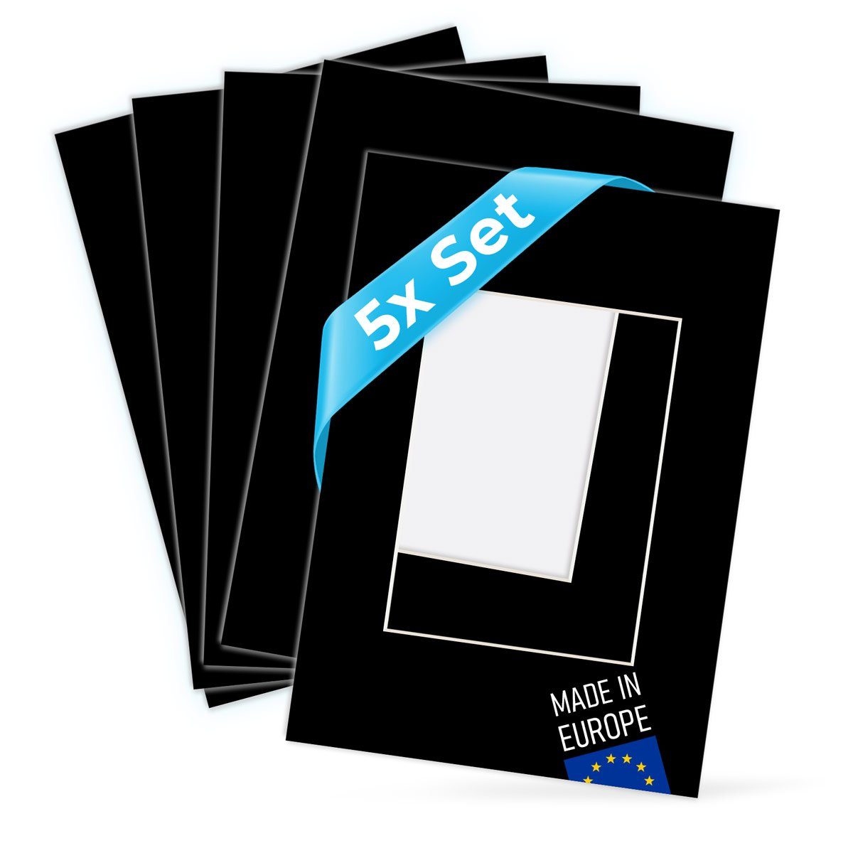 Jedes Passepartout ist 1,5 mm stark und hat einen weißen Kern. Hergestellt werden die Passepartouts aus säurefreiem, alterungsbeständigem Karton mit lichtechten Schnittkanten. Für einen sicheren Transport sind die Passepartouts einzeln in Folie verpackt.