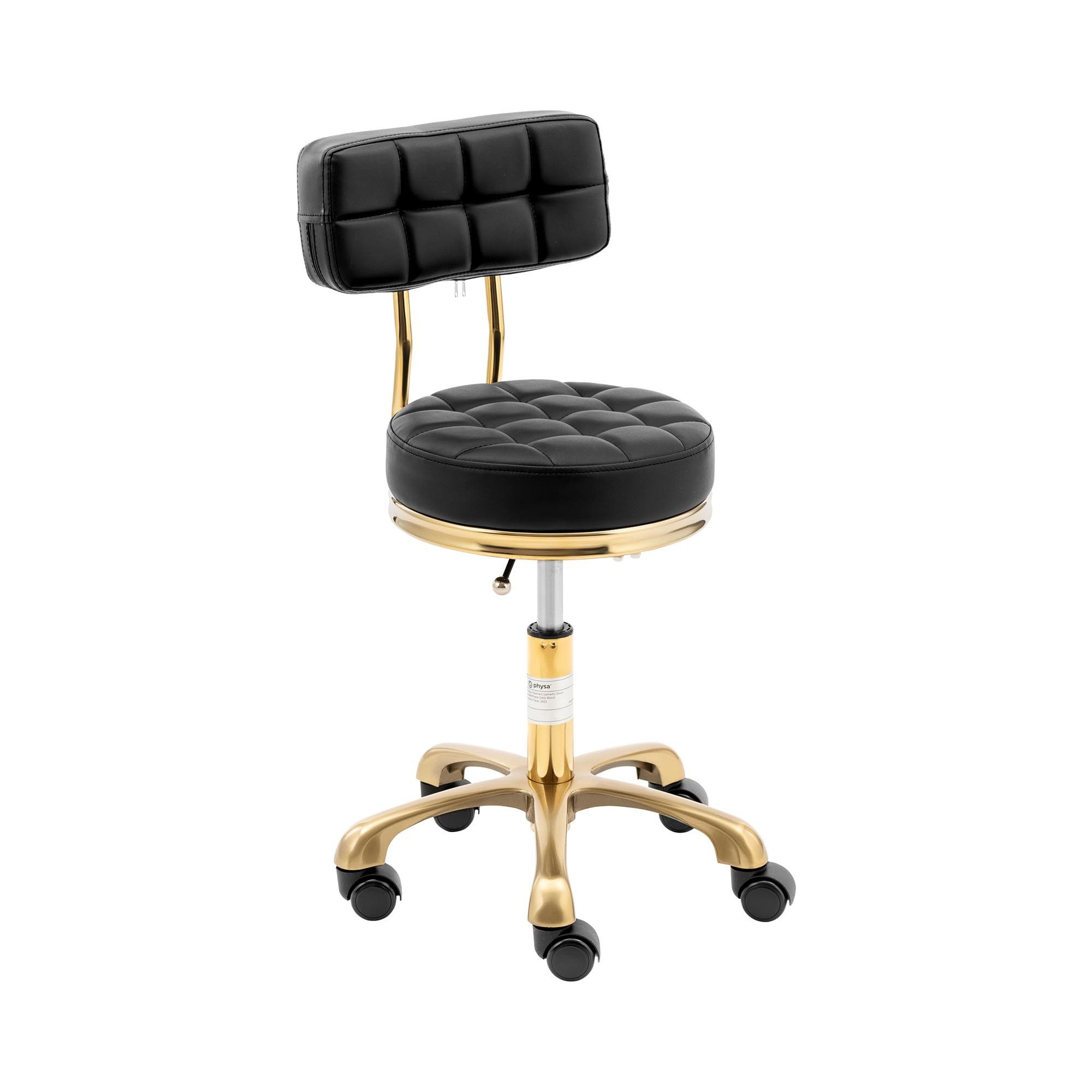 Auf der gepolsterten Sitzfläche mit den Maßen {{seating_pad_dimensions_1137_temp}} cm sitzen Sie selbst über längere Zeiträume angenehm bequem. Für noch mehr Entspannung zwischendurch sorgt die ebenfalls gepolsterte Rückenlehne. Dabei überzeugt der Praxishocker durch seine robuste Konstruktion, die problemlos bis zu 150 kg trägt.