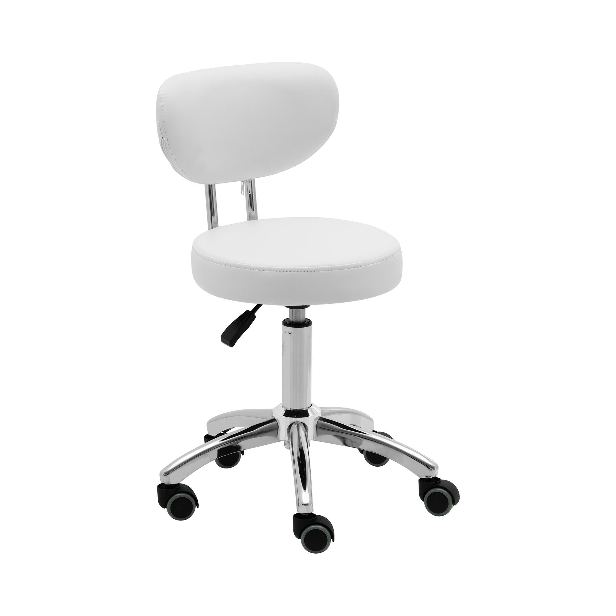Auf der gepolsterten Sitzfläche mit einem Durchmesser von 35 cm sitzen Sie selbst über längere Zeiträume angenehm bequem. Für noch mehr Entspannung zwischendurch sorgt die ebenfalls gepolsterte Rückenlehne. Dabei überzeugt der Praxishocker durch seine robuste Konstruktion, die problemlos bis zu 150 kg trägt.