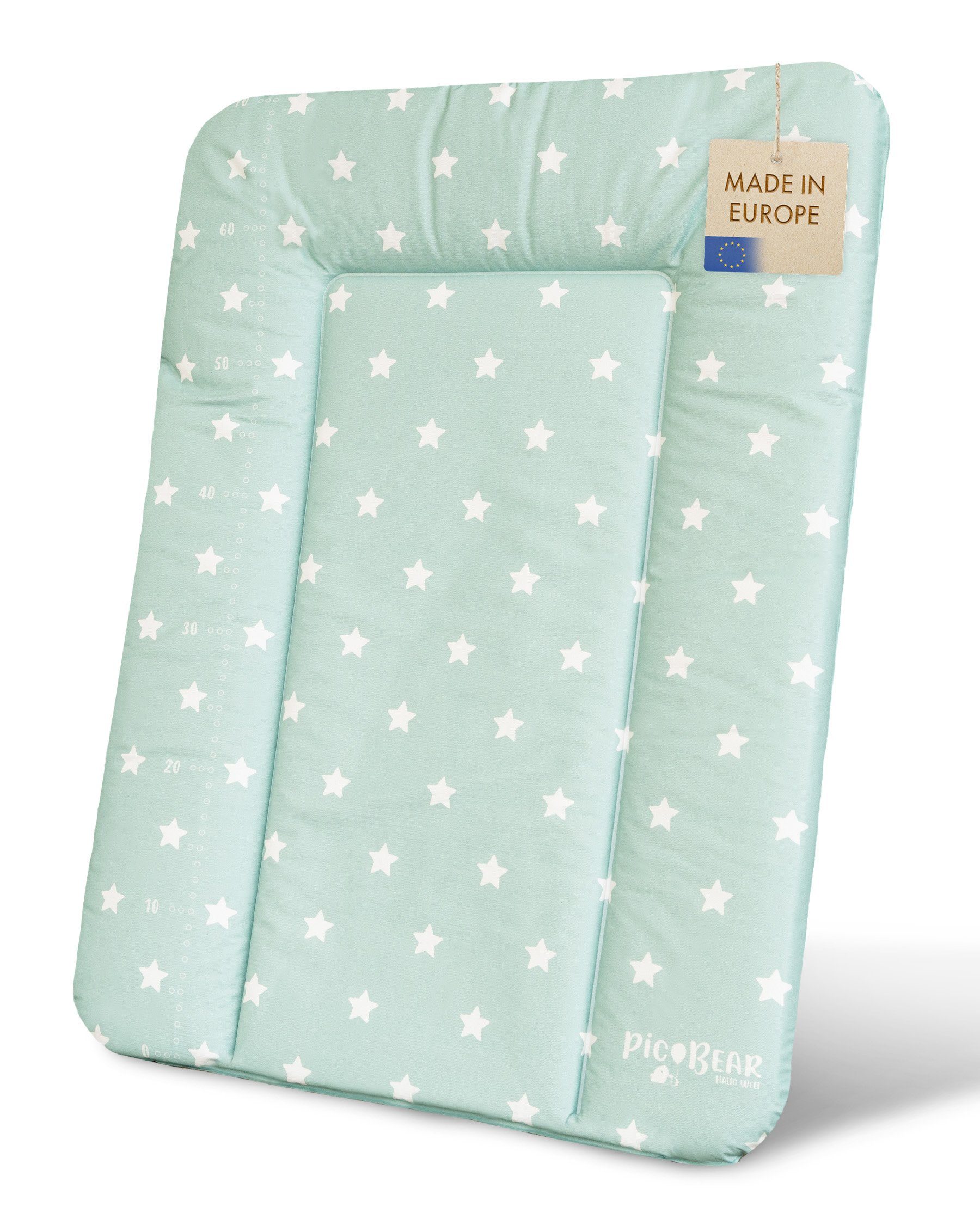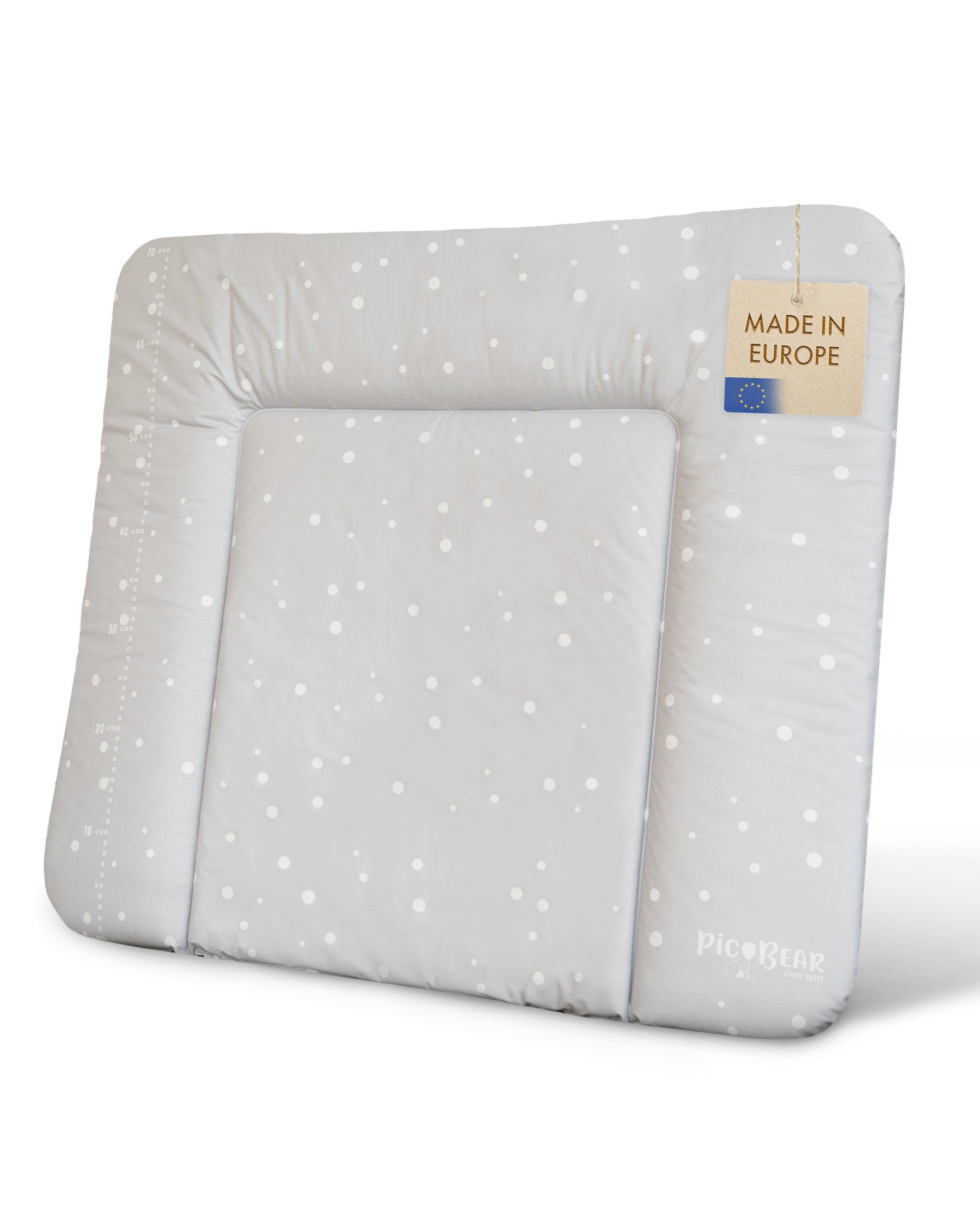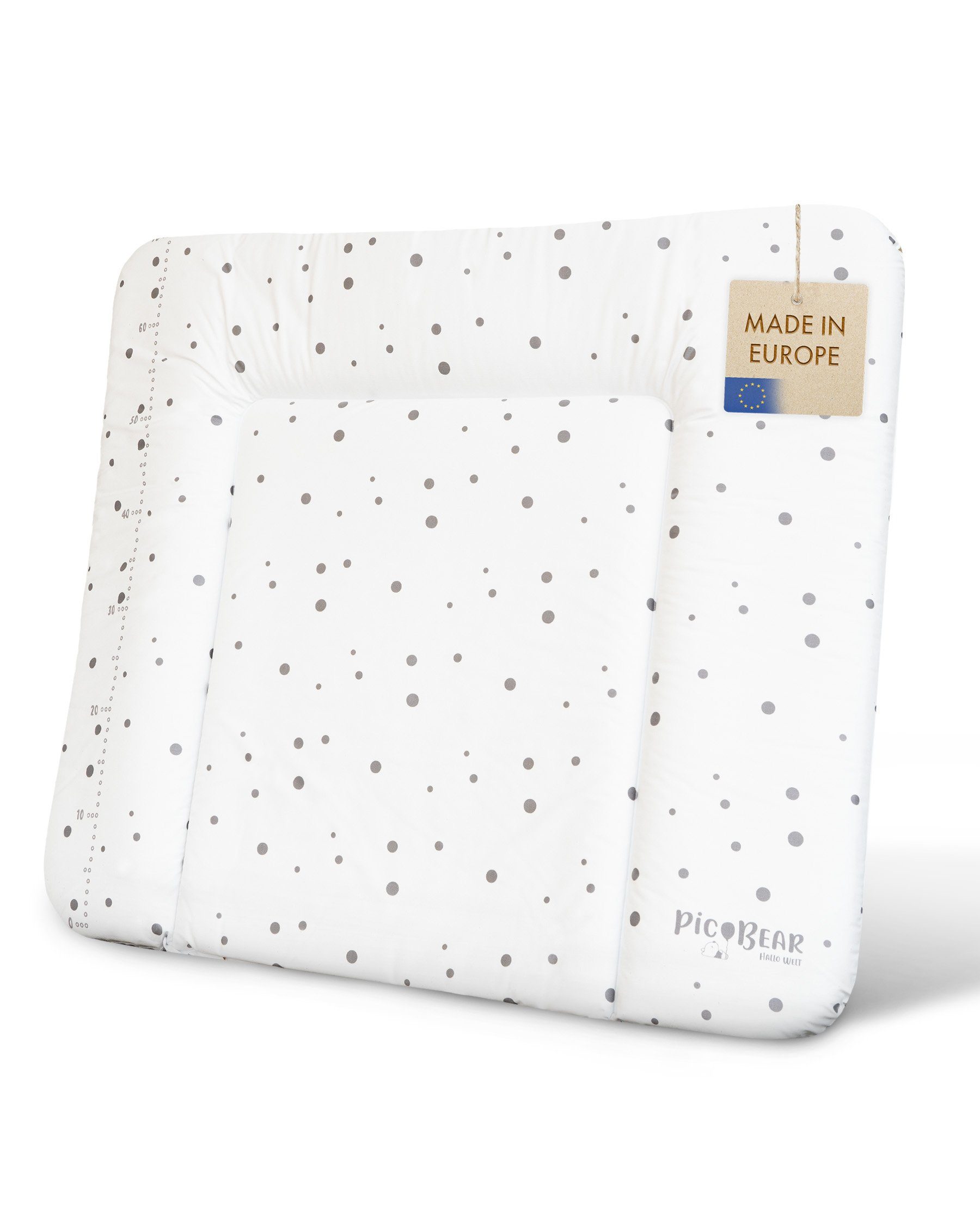 Hochwertige und pflegeleichte Wickelauflage aus der HONEY-Collection von pic bear. Die Sicherheit und der Komfort ihres Kindes liegt uns sehr am Herzen. Daher ist die Wickelunterlage weich gepolstert, hochwertig verarbeitet und schadstoffgeprüft. Damit ihr Kind sicher liegt verfügen sie über einen an drei Seiten erhöhten Rand. Verfügbar in den Größen 85 L x 72 B cm und 50 L x 70 B cm. Wasserdicht und weich Der Bezug ist vollkommen wasserdicht und kann leicht mit einem feuchten Tuch gereinigt werden. pic Bear Wickelauflagen sind zertifiziert, schadstoffgeprüft und für Всеrgiker geeignet. Weichmacherfrei Die Wickelauflage besteht aus 100% hochwertiger PVC Foliei. Füllung aus weichem und bequemen Polyester- Vlies. Made in EU Die Herstellung erfolgt in der EU unter strengen Qualitätsstandards und - richtlinen.