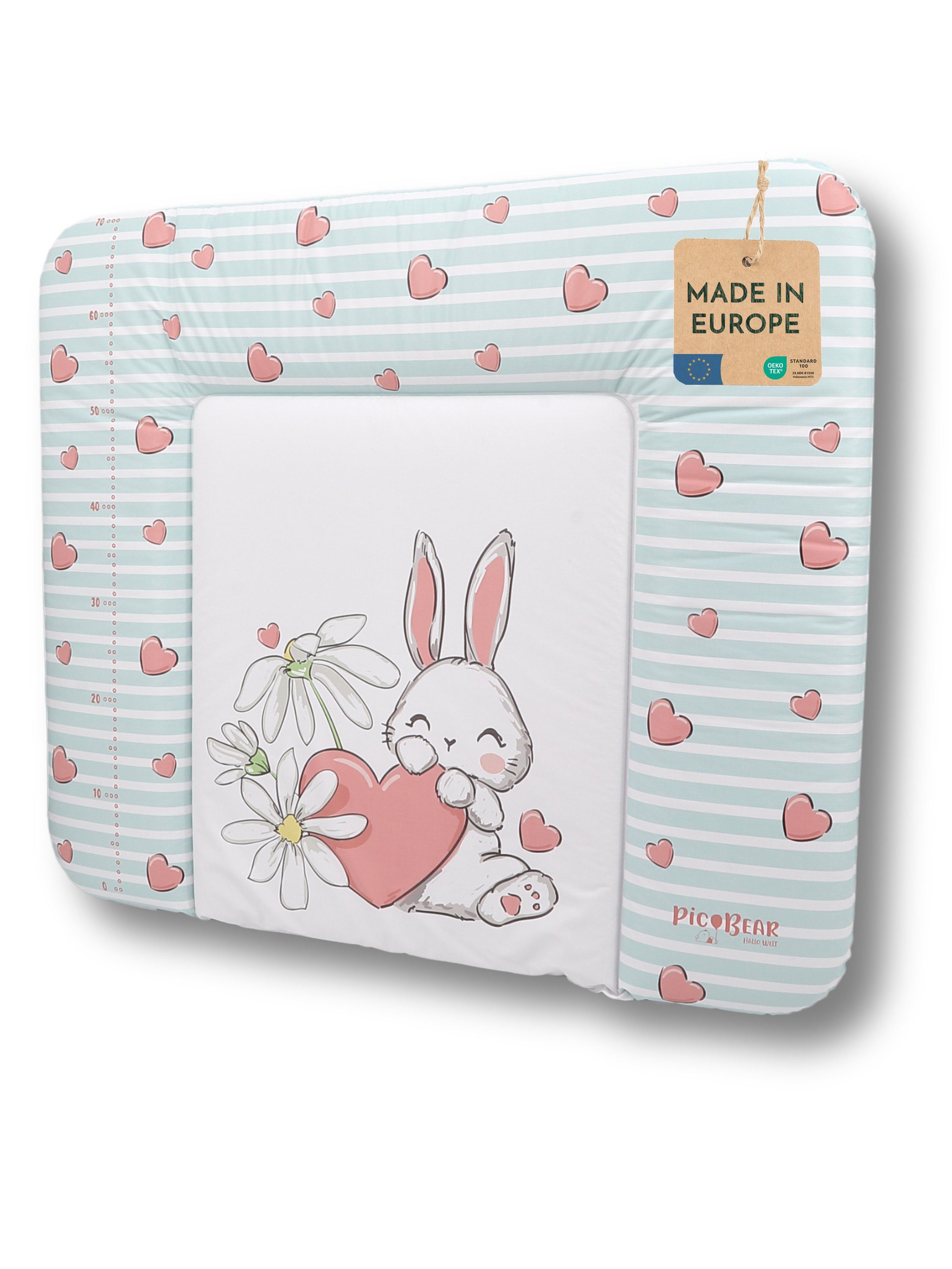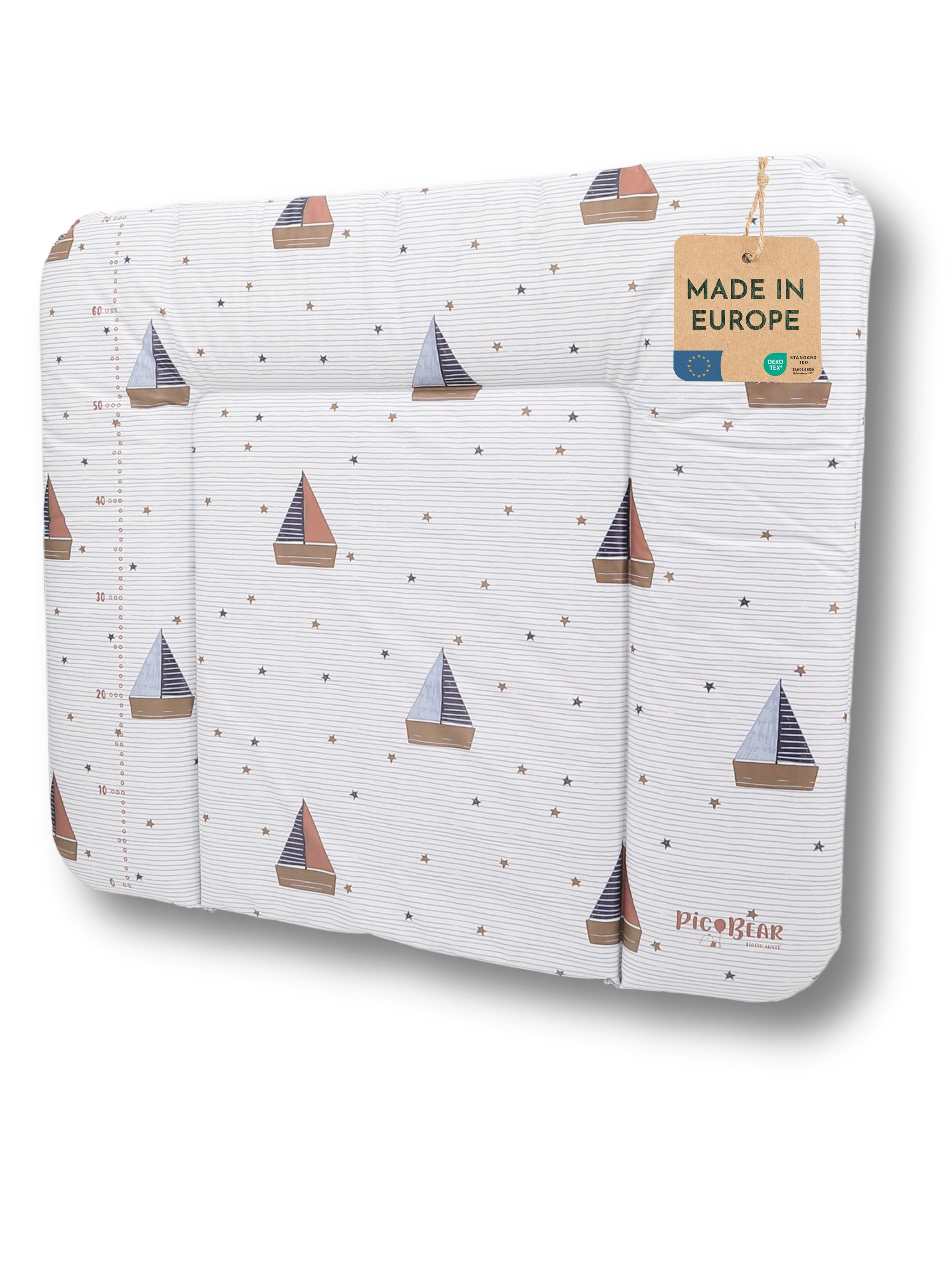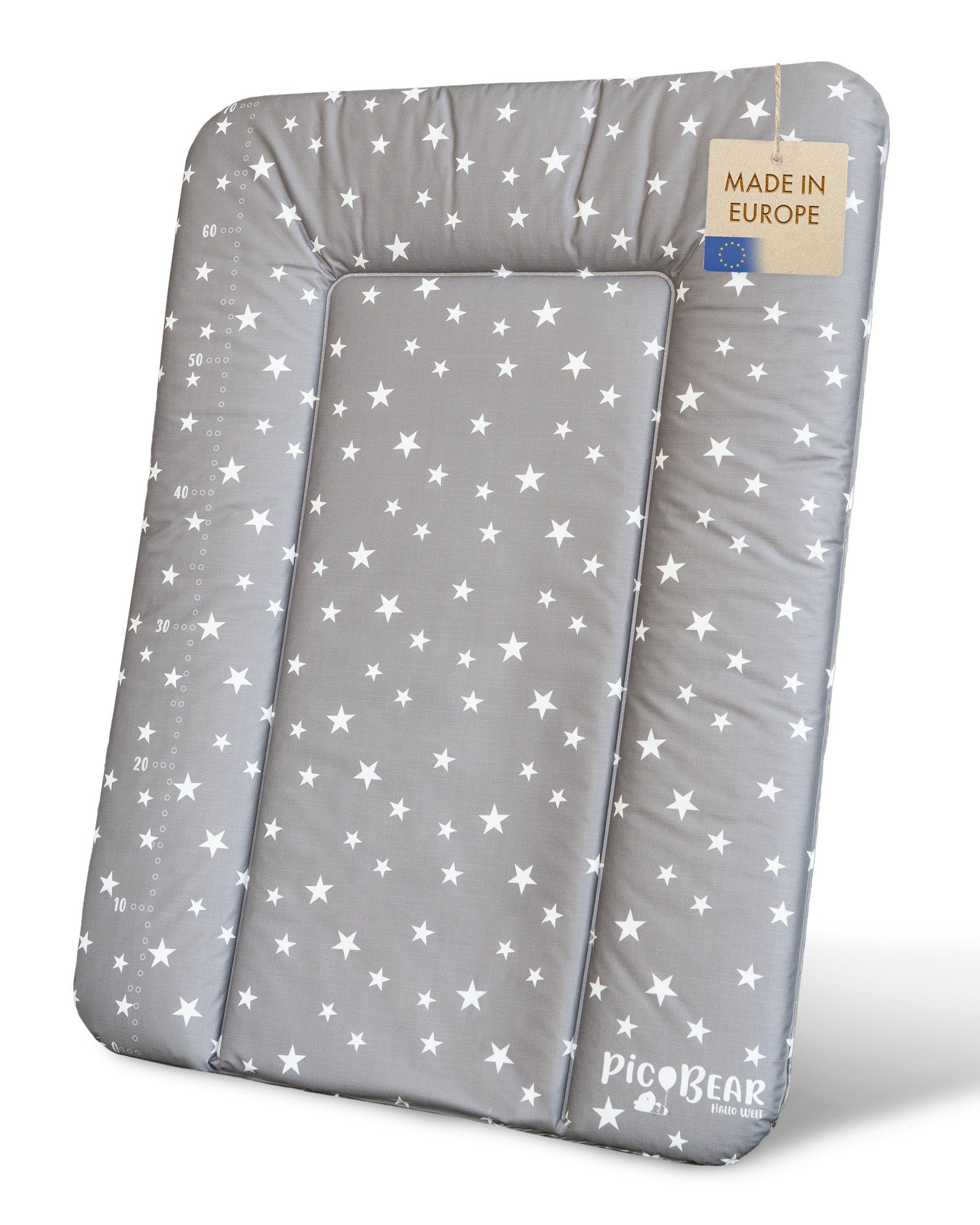 Hochwertige und pflegeleichte Wickelauflage aus der HONEY-Collection von pic bear. Die Sicherheit und der Komfort ihres Kindes liegt uns sehr am Herzen. Daher ist die Wickelunterlage weich gepolstert, hochwertig verarbeitet und schadstoffgeprüft. Damit ihr Kind sicher liegt verfügen sie über einen an drei Seiten erhöhten Rand. Verfügbar in den Größen 85 L x 72 B cm und 50 L x 70 B cm. Wasserdicht und weich Der Bezug ist vollkommen wasserdicht und kann leicht mit einem feuchten Tuch gereinigt werden. pic Bear Wickelauflagen sind zertifiziert, schadstoffgeprüft und für Всеrgiker geeignet. Weichmacherfrei Die Wickelauflage besteht aus 100% hochwertiger PVC Foliei. Füllung aus weichem und bequemen Polyester- Vlies. Made in EU Die Herstellung erfolgt in der EU unter strengen Qualitätsstandards und - richtlinen.