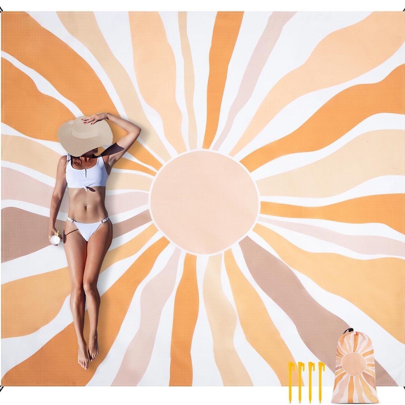 Diese wasserdichte, sanddichte Strandmatte ist das perfekte Accessoire für den Strand. Sie ist schnell trocknend und atmungsaktiv und besteht aus Polyester, sodass Sie problemlos Sand oder andere Verschmutzungen abklopfen können.