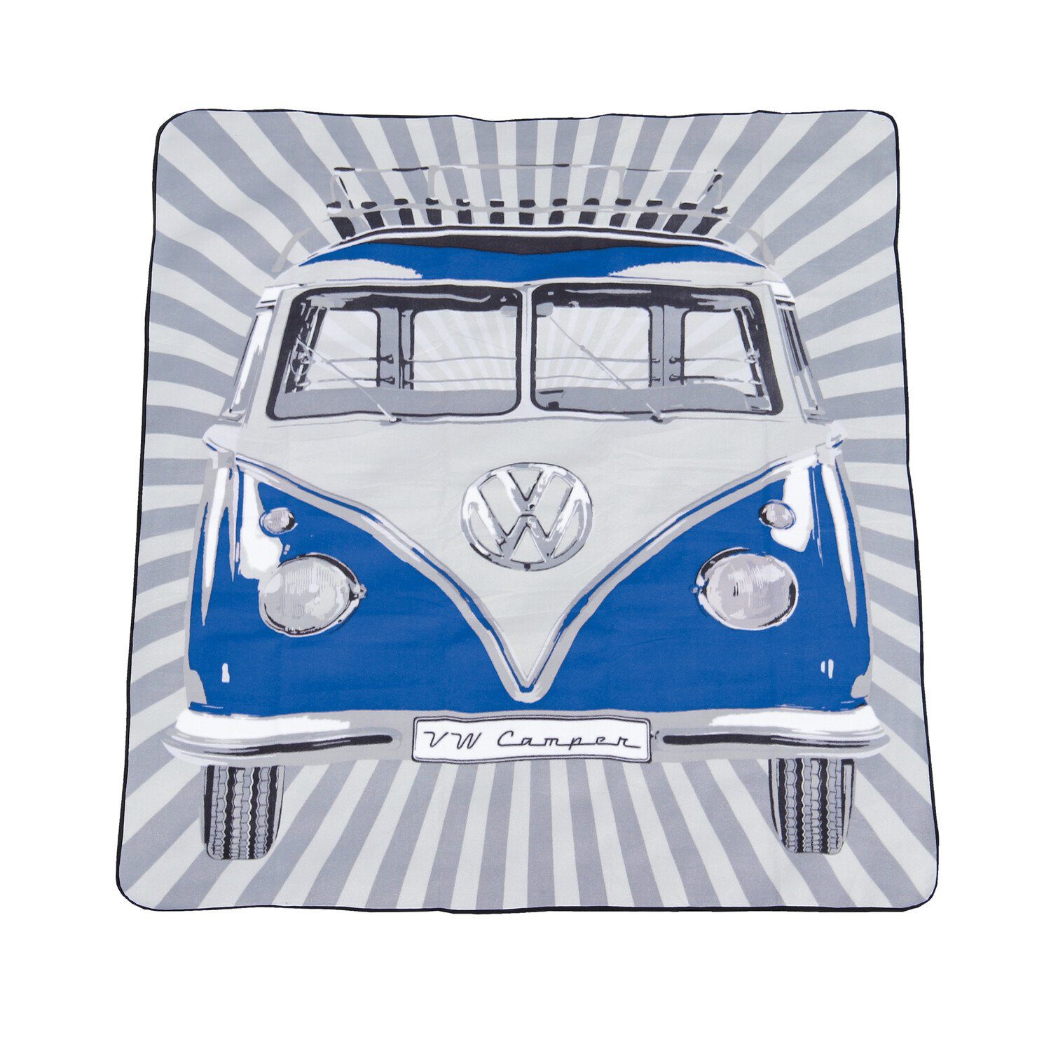 Edle Picknickdecke in tollem Design der legendären VW T1 „Bulli“ Bus/Campervan Front. Die große Liegefläche ist so einladend, dass jeder auf ihrem Platz findet. Dank einer im VW Bulli Design farbigen Tragetasche mit Henkel kann der Fanartikel überall mitgenommen werden . VW Collection by BRISA bietet die Freizeitdecke in unterschiedlichen Farbvarianten an. Ein nützlicher und gleichzeitig schöner Fanartikel. Der ideale Nostalgie-Begleiter für Campingausflüge, Outdoor- und Wochenendtrips.