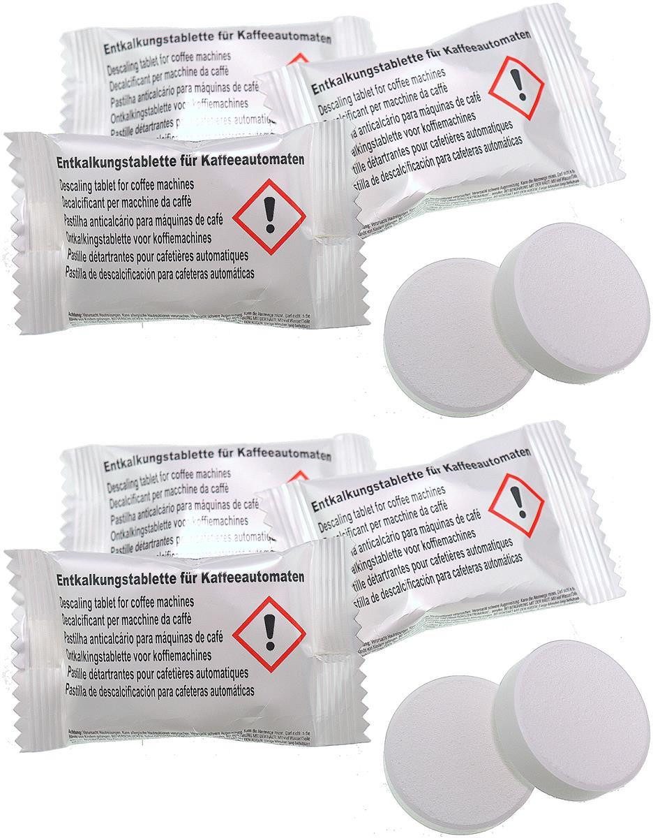 1 Kalklöser-Tablette in einem Behälter mit 500ml Wasser geben. Innerhalb von 4 Minuten hat sich die Tablette vollständig aufgelöst.