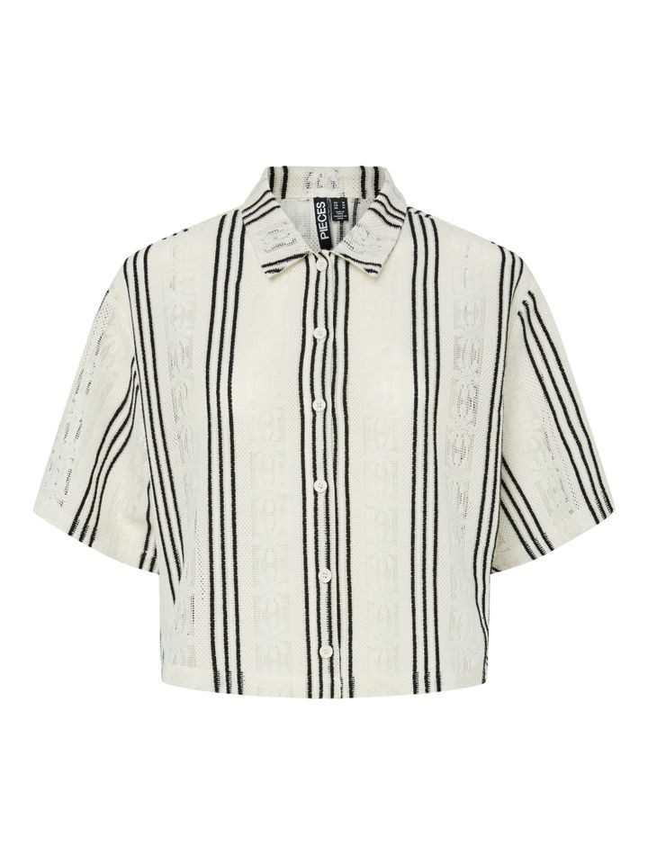 Pieces – Modische Damen Hemdbluse in Cropped-Form mit Häkeloptik und Blumenmuster