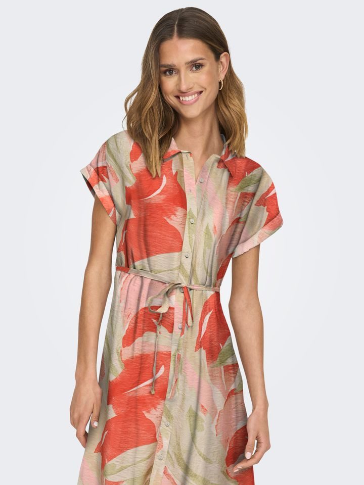 Das JDY Hemdblusenkleid vereint lässigen Komfort mit femininer Eleganz. Der Hemdkragen und die Knopfleiste sorgen für klassische Raffinesse, während der Gürtel in der Taille dem Kleid eine definierte Silhouette verleiht. Der tropische Print bringt sommerliches Flair in deine Garderobe und macht das Kleid zu einem stilvollen Allrounder für Alltag, Büro oder Urlaub.