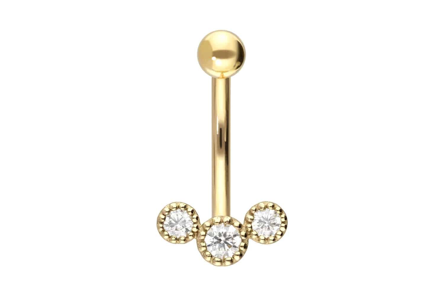 18 Karat Gold - Bauchnabelpiercing 3 eingefasste Moissanite