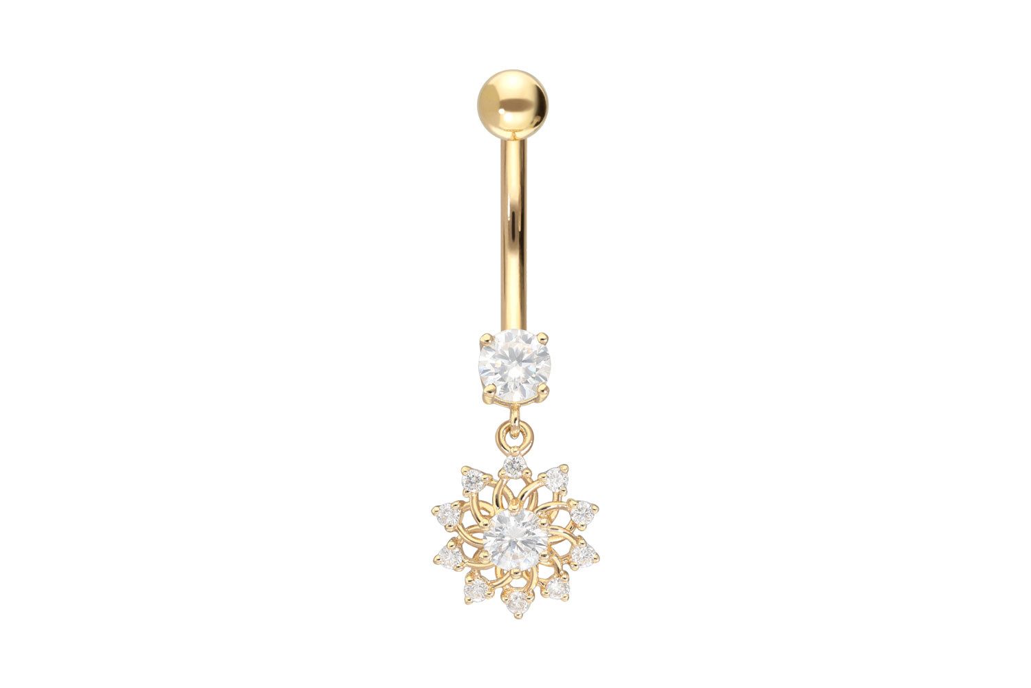 18 Karat Gold - Bauchnabelpiercing Moissanit-Blume
