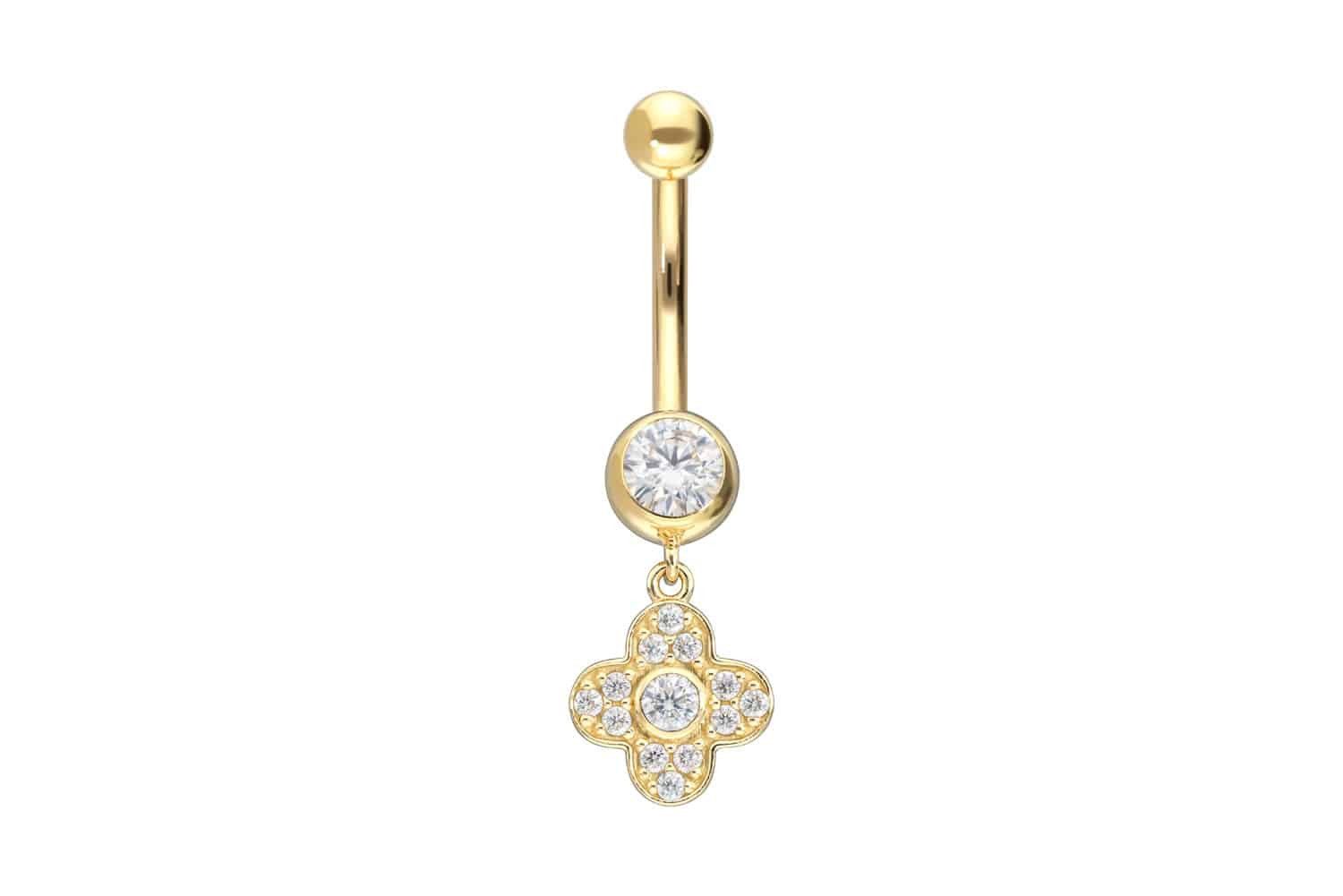 Bauchnabelpiercing 18 Karat Gold Bananabell MOISSANIT-KLEEBLATT