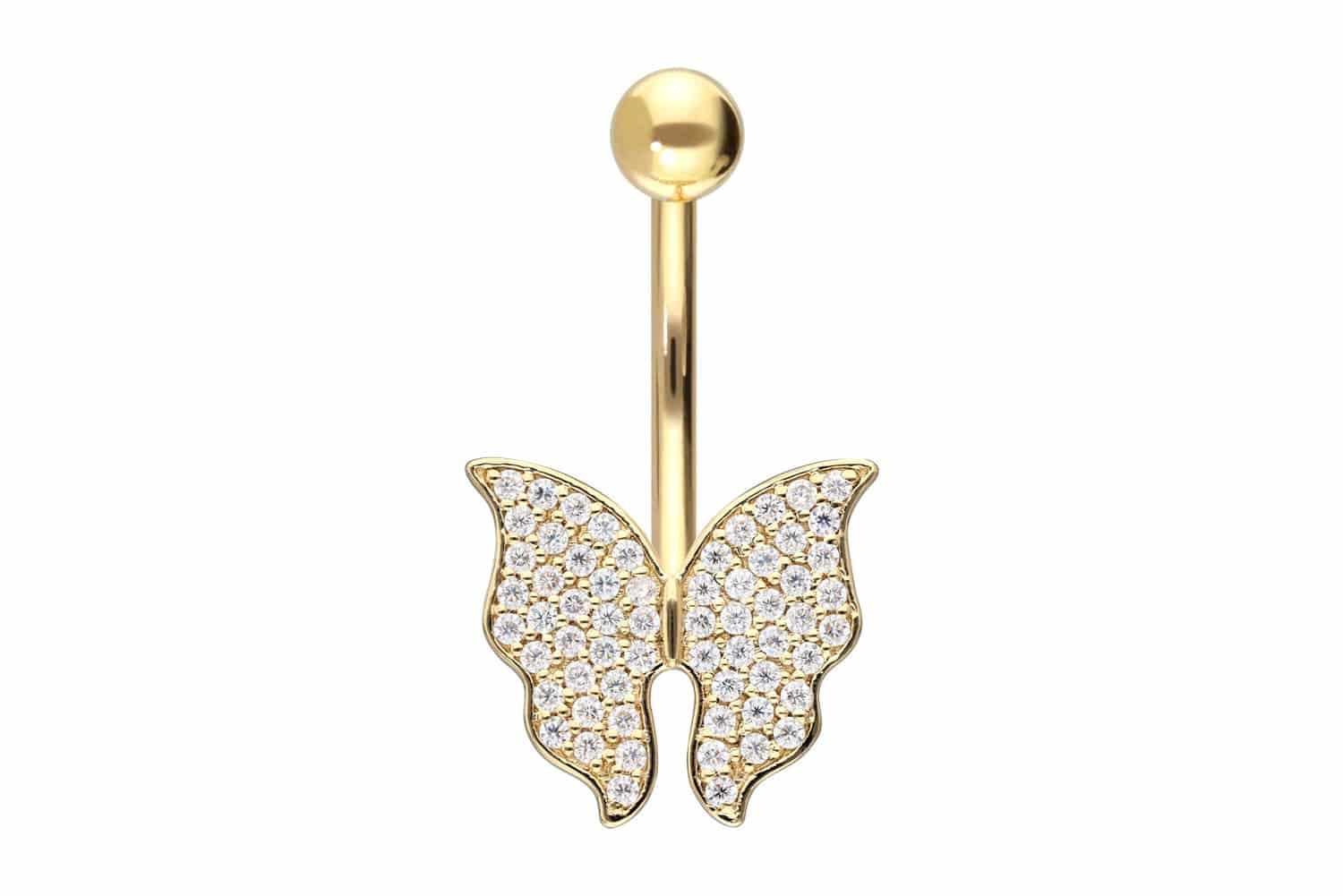 Bauchnabelpiercing 18 Karat Gold Bananabell MOISSANIT-SCHMETTERLING