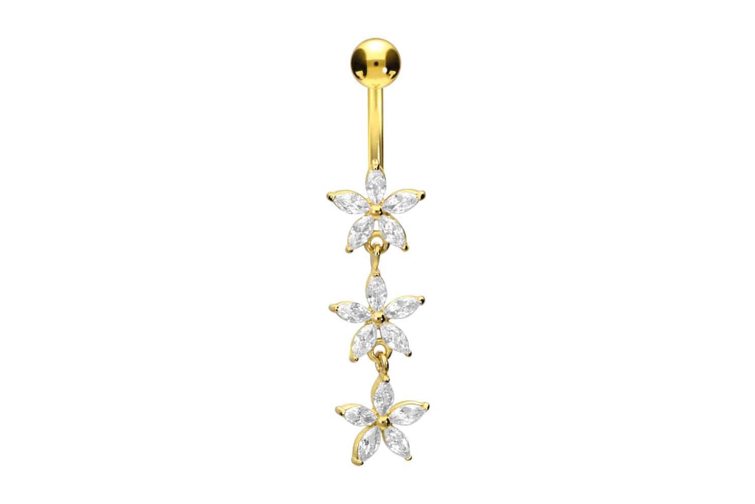 Chirurgenstahl 316L - Bauchnabelpiercing 3 kleine Kristallblumen