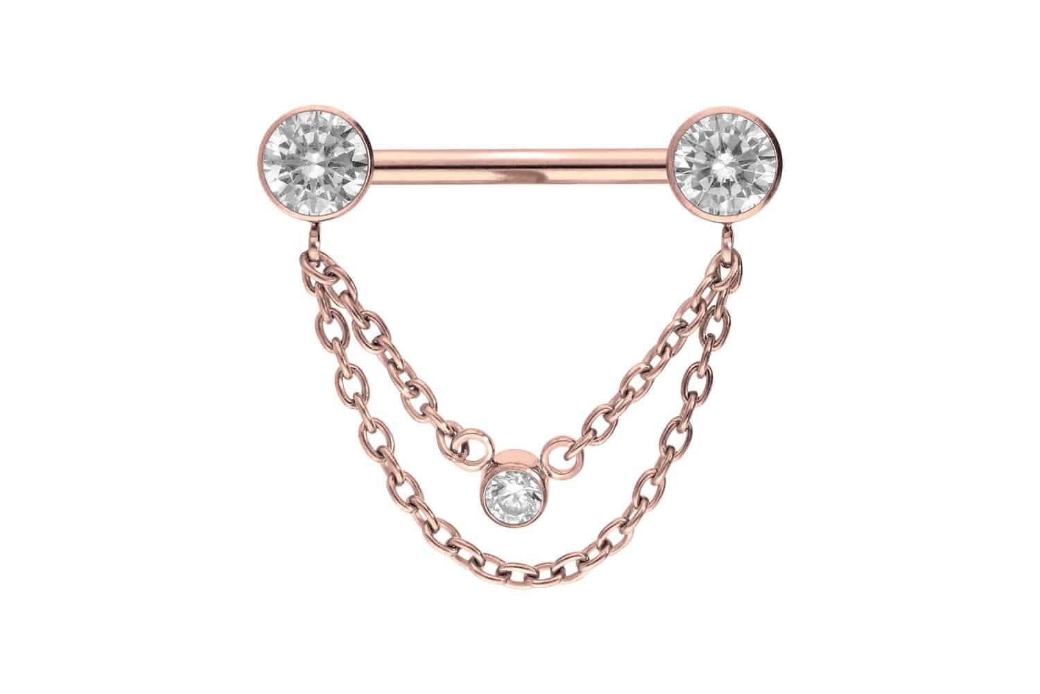 Brustwarzenpiercing Titan Barbell mit Push Fit 2 KETTEN + KRISTALLDISCS
