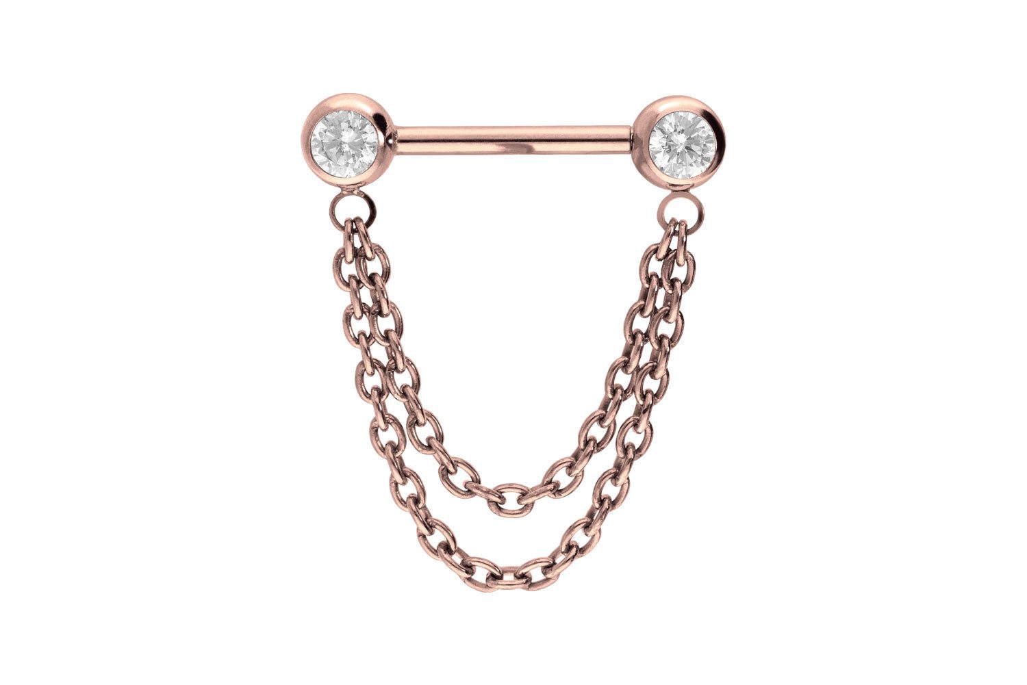 Brustwarzenpiercing Titan Barbell mit Push Fit 2 KETTEN + KRISTALLE